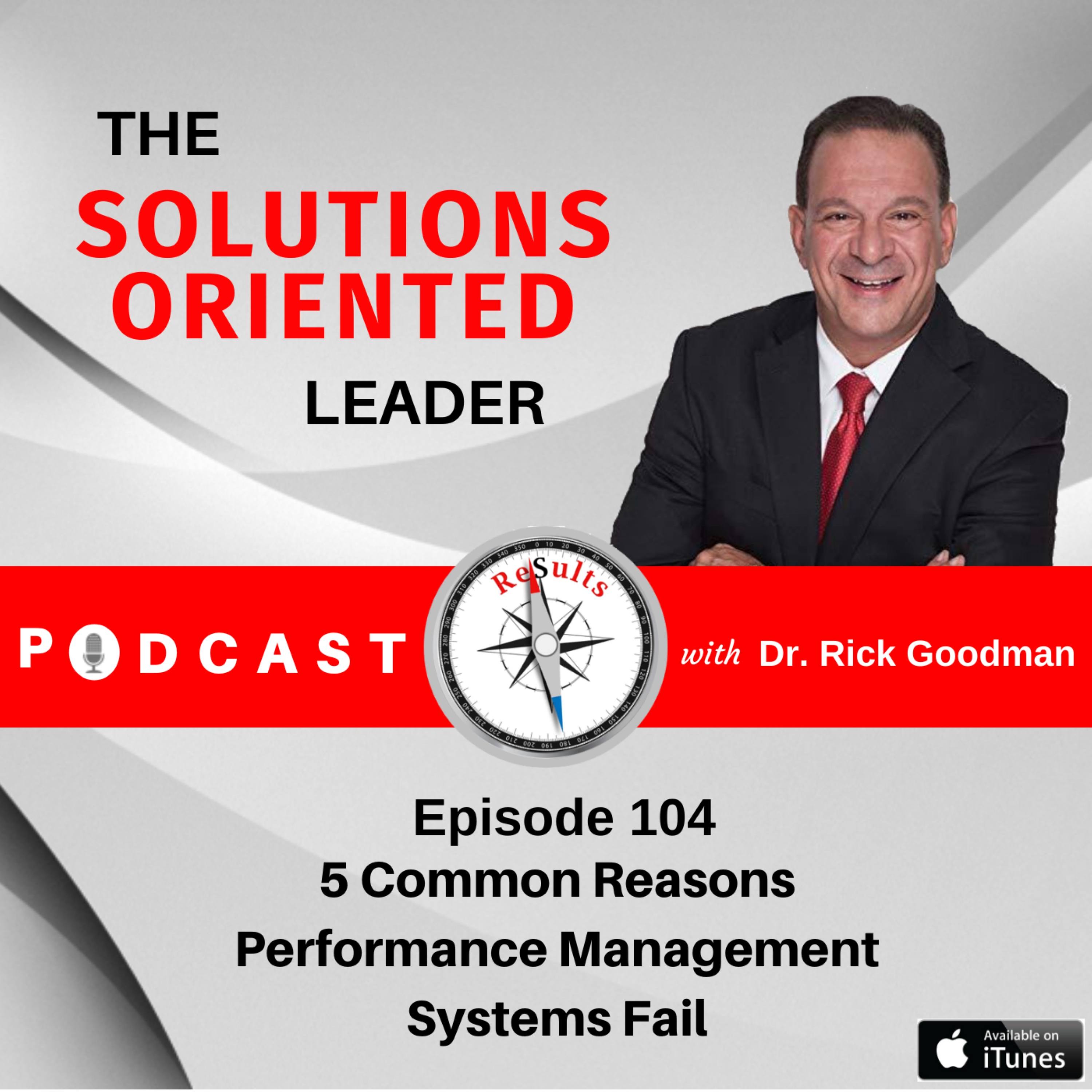 Dr Rick Goodman leadership and employee engagement expert and the author of the book The Solutions Oriented Leader Today I am going to share with you 5 Common Reasons Performance Management Systems Fail 1 You don’t offer employee feedback in a timely manner. Let’s say you observe an employee making a critical error. What do you do? Do you stop and offer a clear correction without delay? Or do you wait a few months for the employee’s annual review to roll around? It may sound like a silly question, but you’d be surprised how many team leaders save all serious feedback for that once-a-year review… which effectively deprives employees of the ongoing, in-the-moment feedback they really need. A related problem that I often see: Companies that do the bare minimum by putting an annual review process in place, then don’t even follow through with that! If you promise your team members an annual review, it’s vital that you follow through! 2 You don’t provide employees with the right kinds of goals. Another potential problem is inappropriate goal setting. An effective performance management system will always give employees some clear benchmarks to strive for. Some of the biggest goal setting problems include: Setting goals that aren’t objective or quantifiable; goals that can’t really be measured or tracked in any meaningful way. Failing to set stretch goals; even your best employees should be given something to reach for. Goals should be attainable, but not too easy! Setting goals that aren’t aligned with the company’s overall goals, or with the goals of the other team members. 3 Not providing employees a path to improvement. When an employee messes up, or fails to meet their goals, it can be demoralizing for everyone. Remember that the function of an effective performance management system is to provide a clear path to performance improvement. Don’t fall into the easy trap of being purely punitive. Give struggling employees the road map they need to get back on track. An effective performance management system will always give employees some clear benchmarks. You don’t put it down in writing, Document Everything! Have a set time when employee reviews take place. Share the goals you set for employees, and the progress they’ve made since their previous review. Write down any disciplinary actions you must take. Your performance management system should always include clearly articulated justifications for why you do what you do. 4 Ignoring problem employees. You may not like to initiate disciplinary action; you may not want to even think about firing someone. And you may be at a loss for more positive, proactive measures to help your struggling employees. But if you have someone who is toxic or who just doesn’t pull their weight, that’s something that’s bound to have an adverse impact on employee morale. An effective performance management system will always include a framework for dealing with problem employees, rather than letting their issues fester. 5 You don’t recognize your high achievers. One more thing to note: People like to be praised, and to have their good work acknowledged. It doesn’t necessarily mean you need a ticker-tape parade for each employee who does good work but do take a minute to offer a proverbial pat on the back when warranted. This can be an important way to boost morale and keep those high achievers fully engaged. I hope you enjoyed this short lesson. please subscribe to our channel and if you learned something please like the video and remeber sharing is caring. Thank you very much for tuning in and always remember we get paid for solutions and results so keep making it happen!