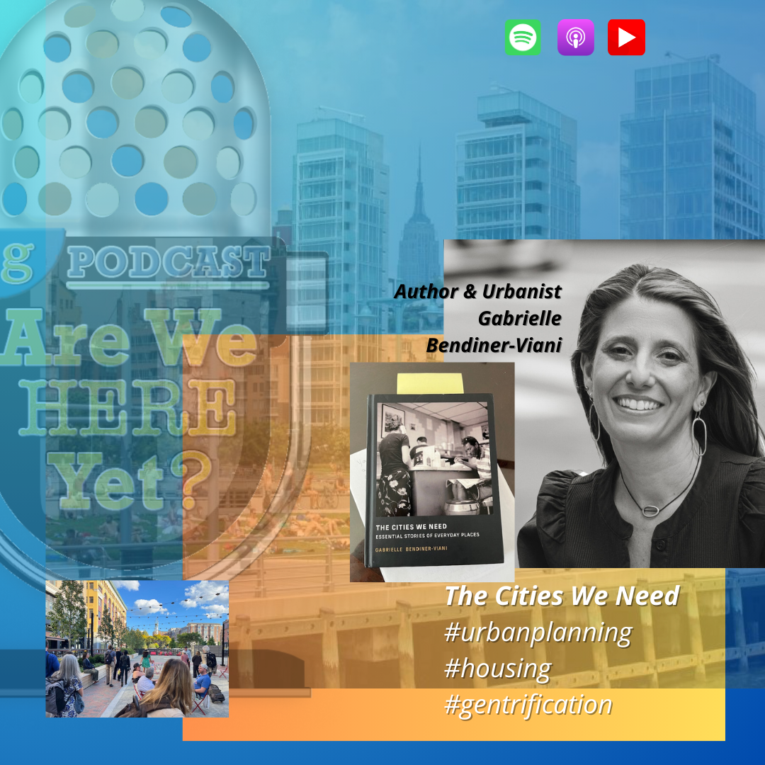 Our conversation made me think hard here at the Are We Here Yet? podcast about what kind of a society we want to build and who we want to be in the decades ahead. How can we learn from our mistakes? How can we appreciate the micro-moments that make our lives in a neighborhood worth living and how do we steward a place to provide that for all citizens?