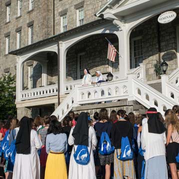 FIAT Days could be described as a week of a thousand prayers — daily holy hours, Mass, a pilgrimage to the National Shrine Grotto of Our Lady of Lourdes, time alone with God. It also includes sports, games and giggles alongside 17 religious sisters in their habits representing different communities.