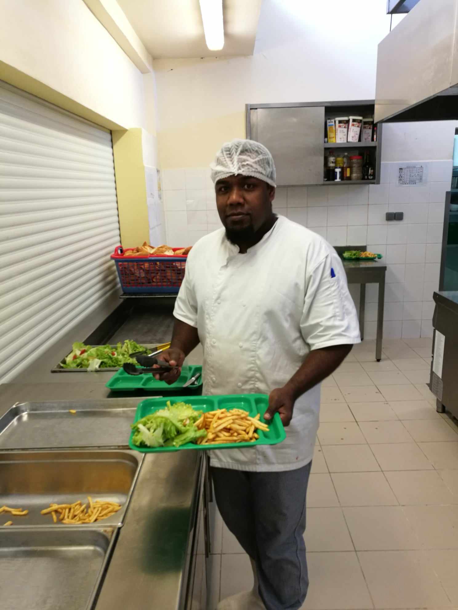 Juillet 2023. Dans le cadre du forum des métiers organisé au collège de Tadine par les élèves de Troisième prépa-métiers, les élèves des collèges de Taremen et de la Roche rencontrent l'un des cuisiniers de l'internat de Tadine, monsieur Wakoca Palene.