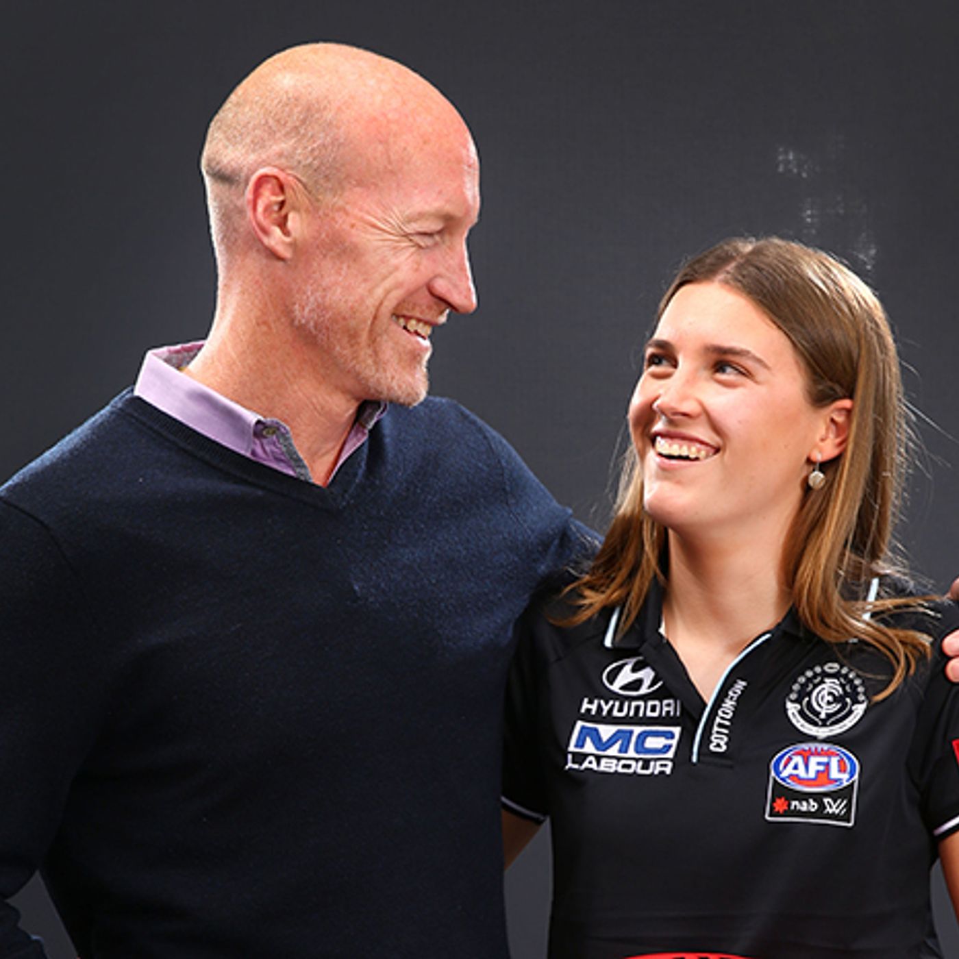 Andrew and Abbie McKay speak to ABC after the Blues made history with the first-ever AFLW father-daughter selection.