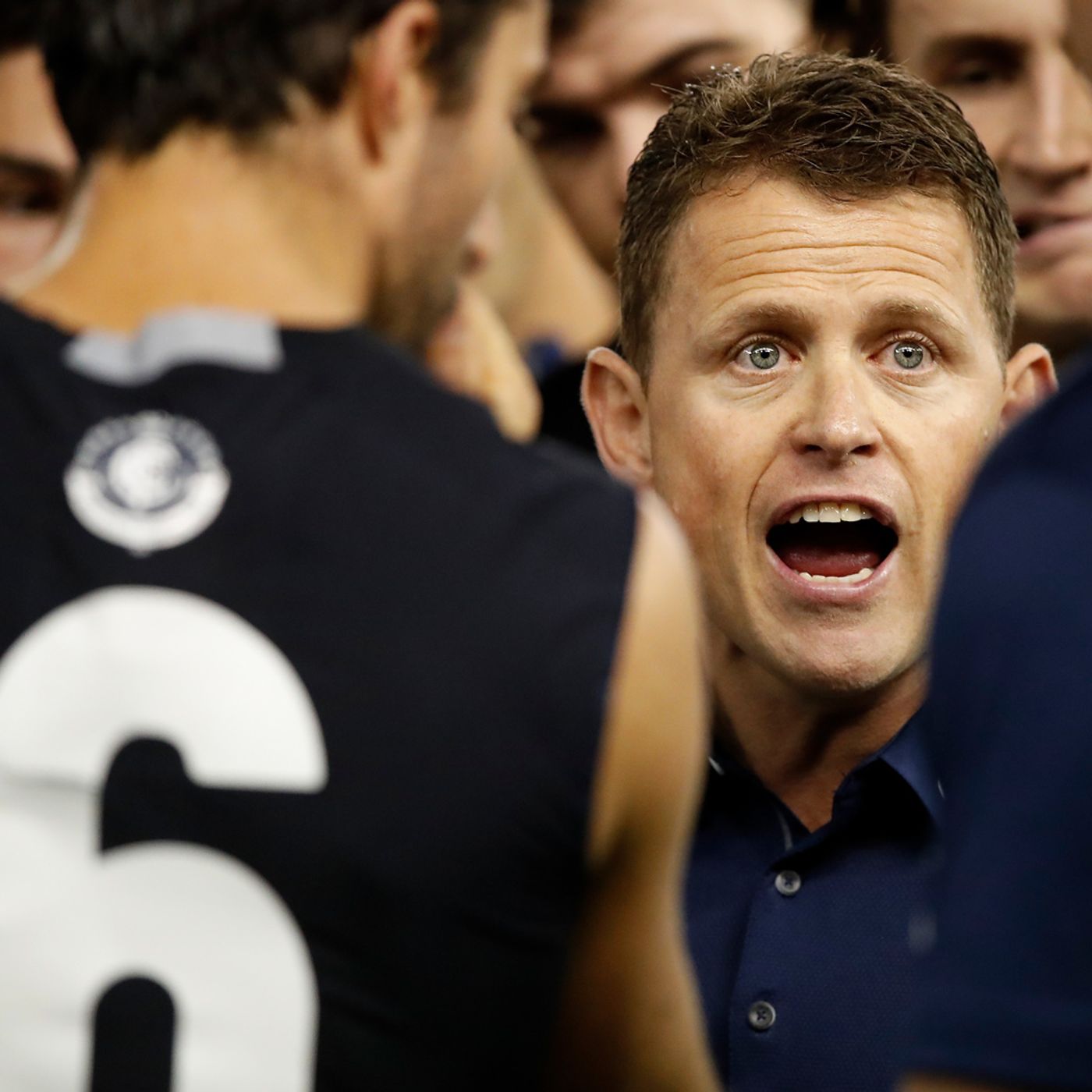 Carlton coach Brendon Bolton speaks to the media after the Blues' 21-point loss to the Bulldogs at Etihad Stadium.