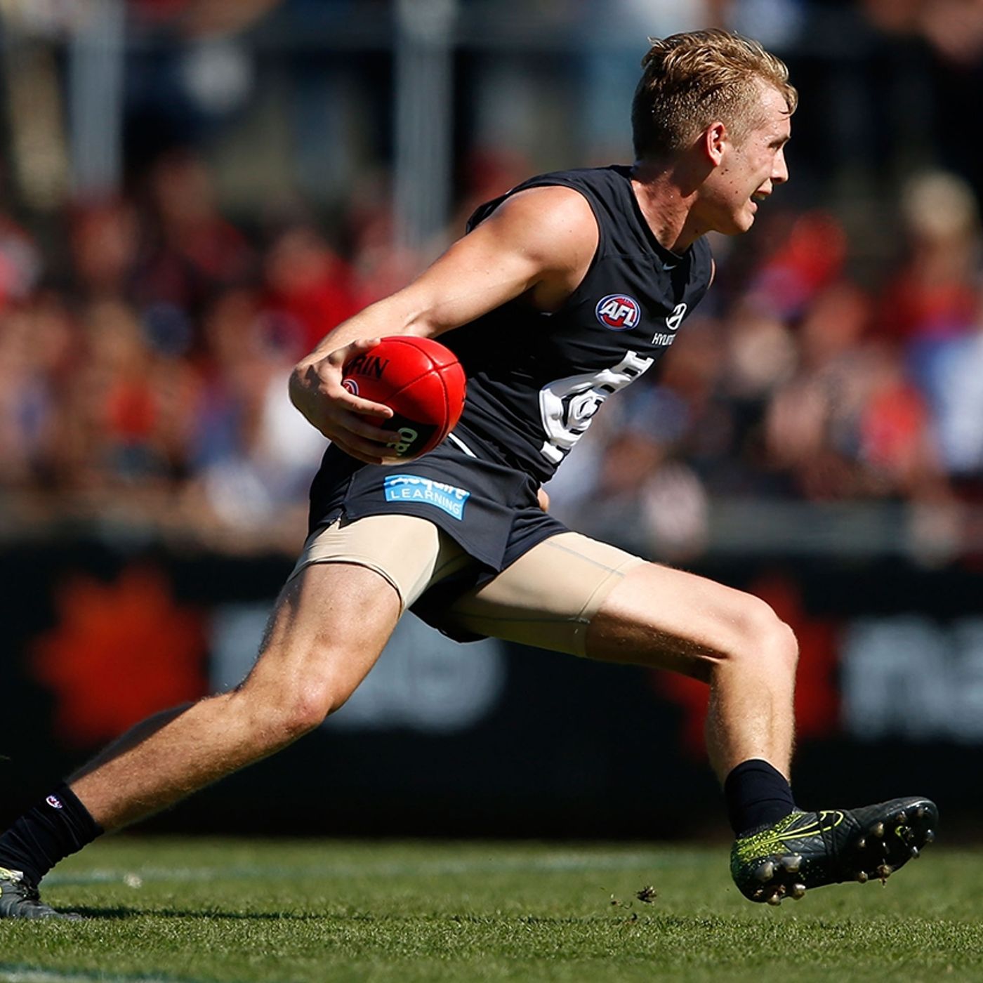 Carlton defender Ciaran Byrne speaks to 3BA (Ballarat radio) during the Blues' 2016 Australia Post Community Camp in central Victoria.