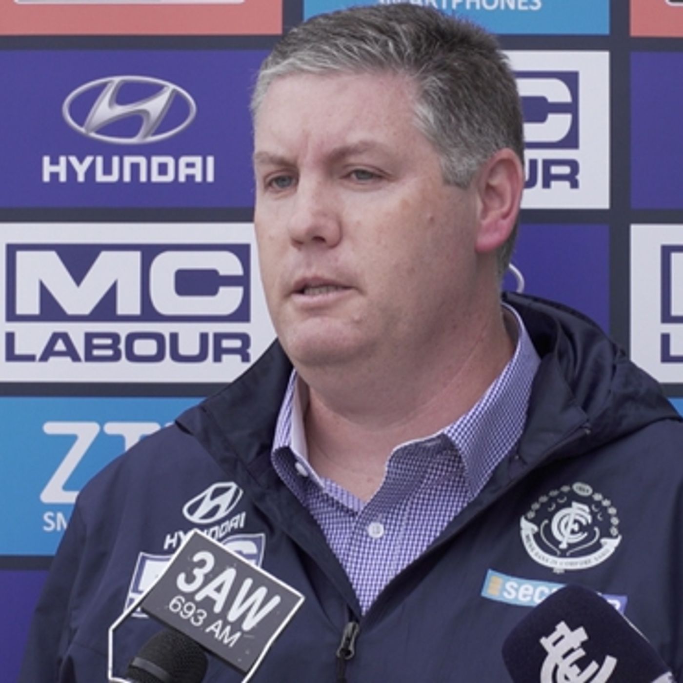 Carlton AFLW coach Damien Keeping speaks to the media ahead of the Blues' season opener against Collingwood on Friday night.