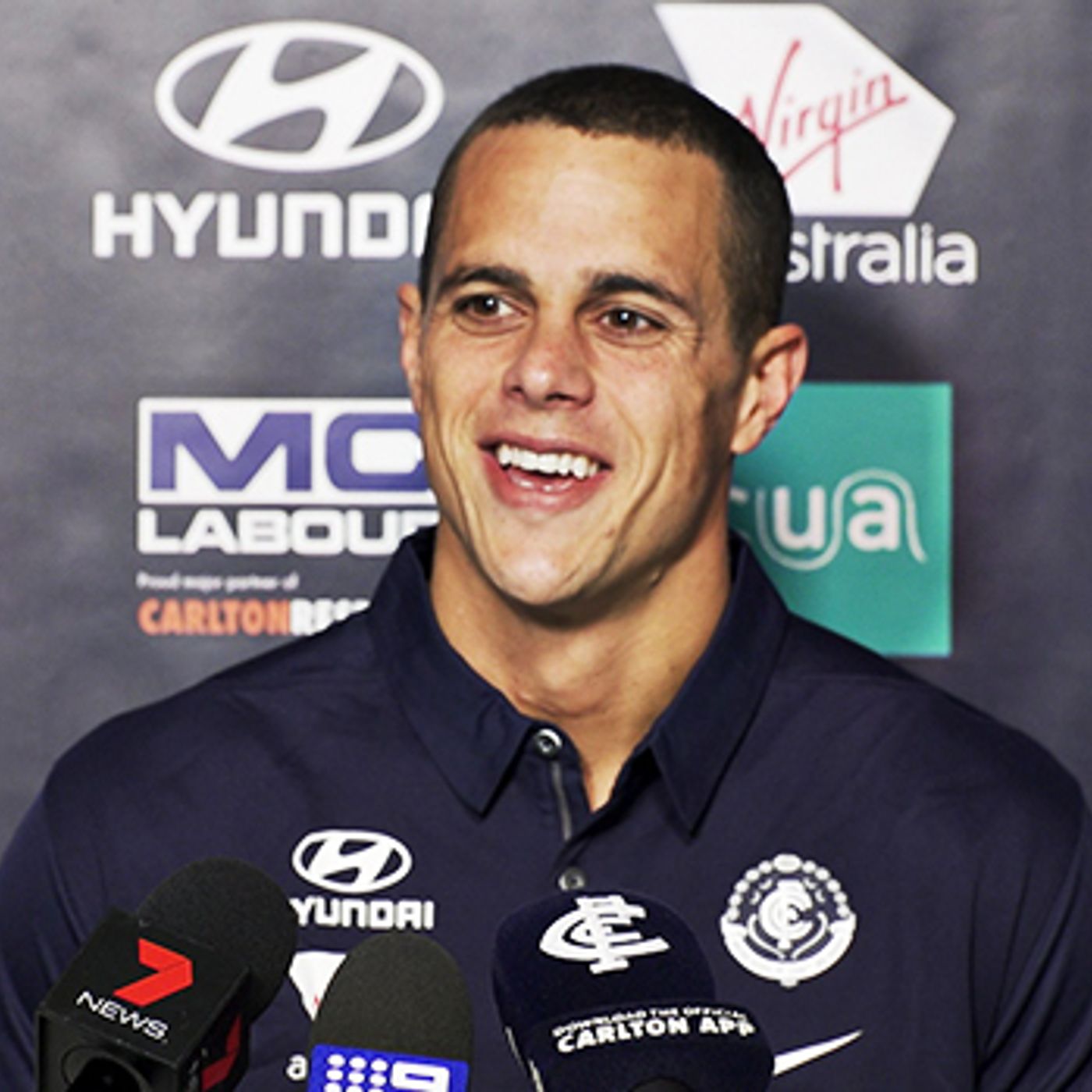 Carlton midfielder Ed Curnow speaks to the media at Ikon Park ahead of the Blues' clash with GWS.