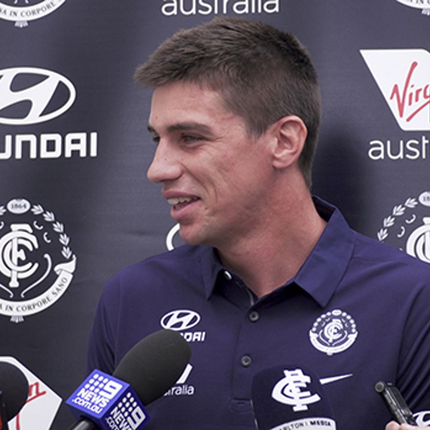 Carlton ruckman Matthew Kreuzer fronts the media ahead of open training at Ikon Park.
