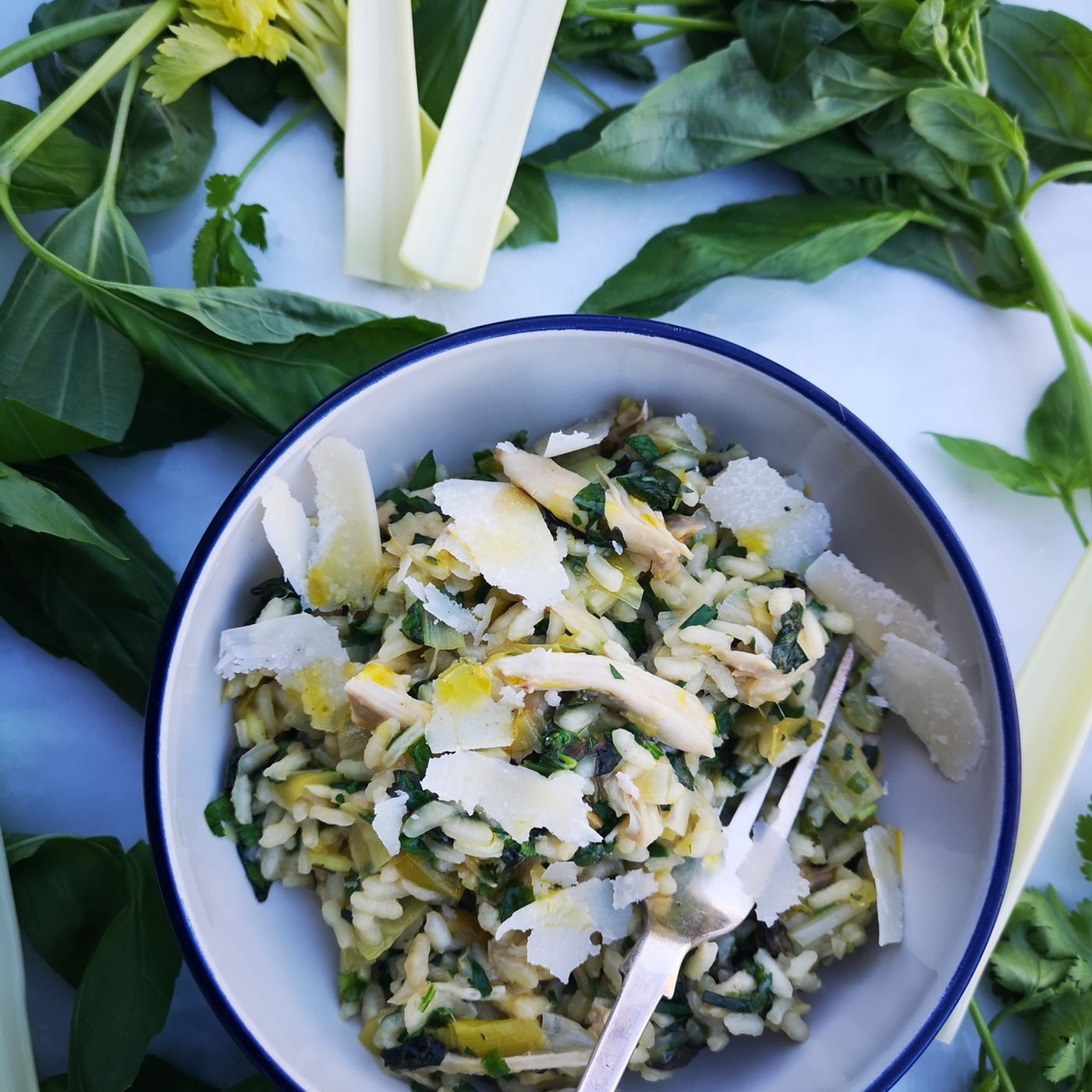This week local celebrity chef Steph Moon has whipped up a Spring Chicken Risotto dish with celery and fresh garden herbs.