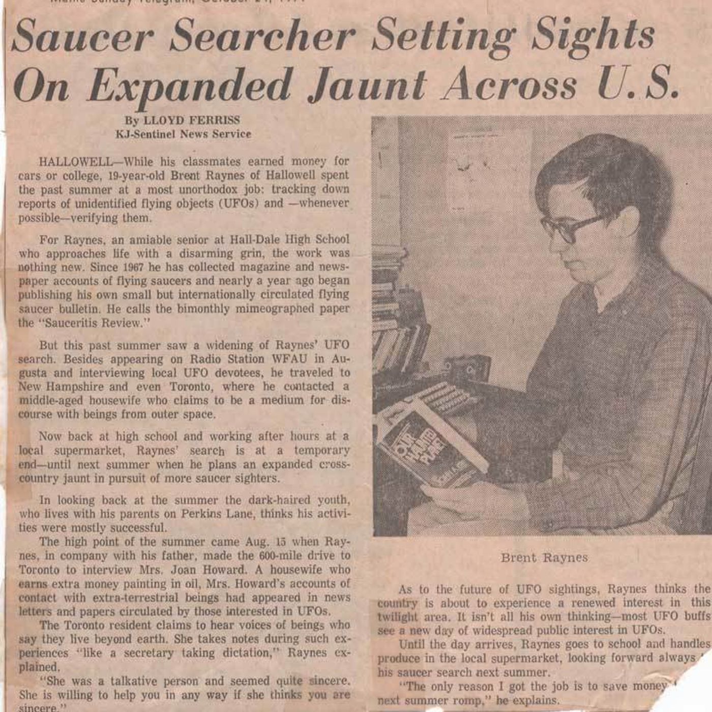 Brent interviewed his first contactee in August 1971, in Toronto, Canada. The article in the image is about that interview. He's compiled a huge archive of Fortean, Paranormal, UFO and Unexplained cases since then.