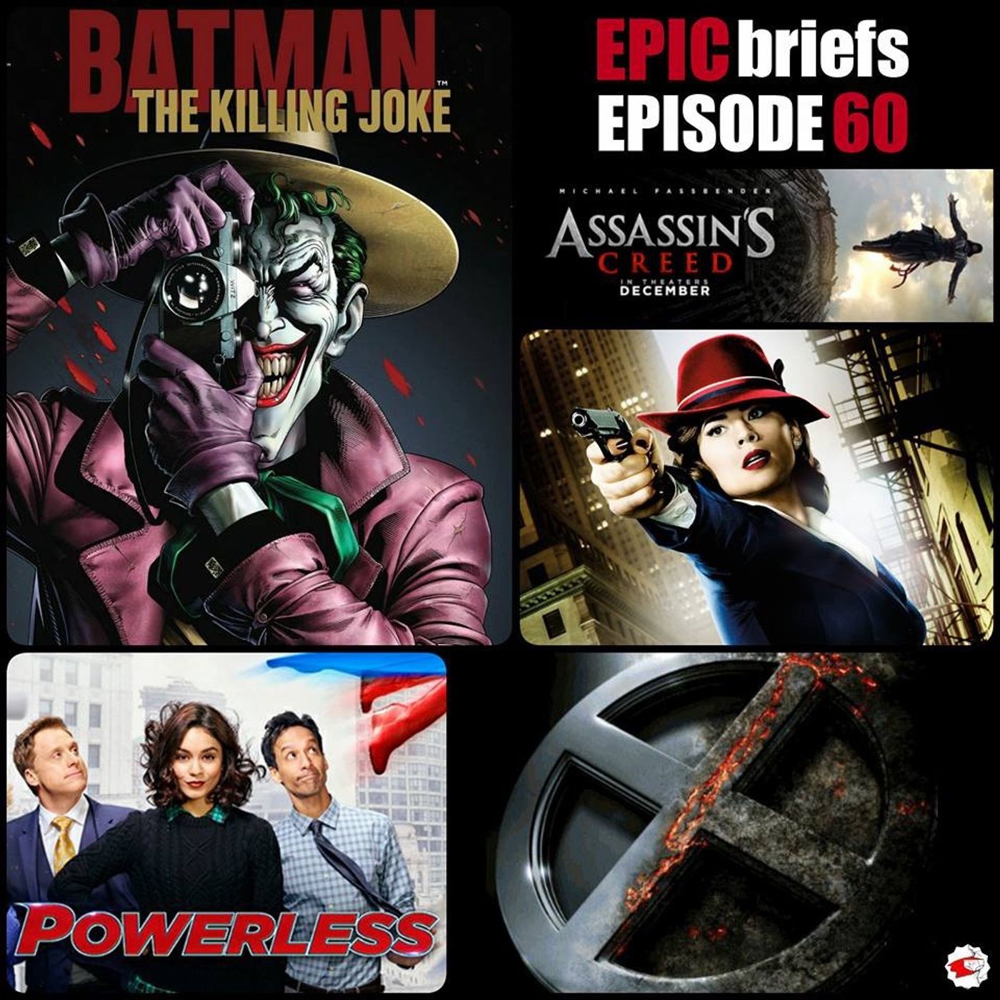 The upcoming and highly anticipated DC animated movie - The Killing Joke, the Assassins Creed movie trailer, NBC's superhero world based comedy Powerless, Marvel's Agent Carter's surprising cancellation, and X-Men: Apocalypse's early reviews.