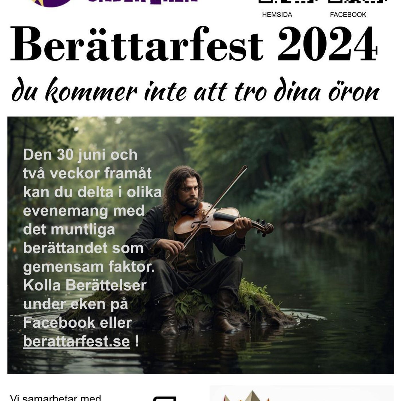 Berättelser under eken presenterar i år ett mer än vanligt välfyllt program med skrönor och berättelser av alla slag. Berättarfest 2024 pågår mellan 30 juni och 10 juli.