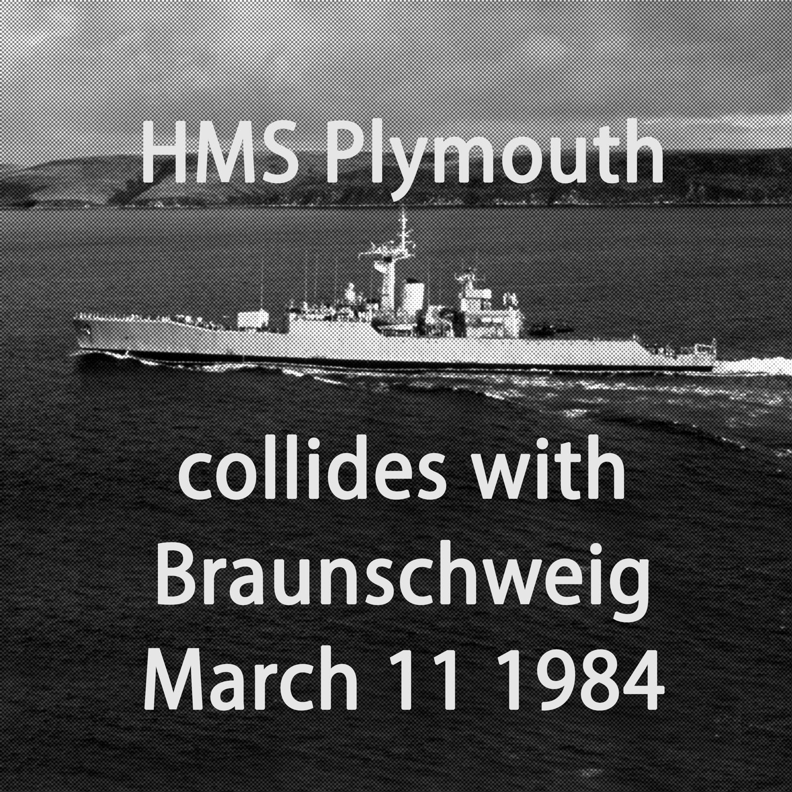 Intervju med commander Michael C Cole på HMS Plymouth som den 11 mars 1984 i samband med en övning i södra Östersjön kolliderade med den tyska fregatten Braunschweig. Interwiew (in English and Swedish) with the commander of the frigate HMS Plymouth, while the vessel was repaired in Karlskrona. With: Commander Cole and reporters Gunilla Lindgren and Anders Held of the local radio.