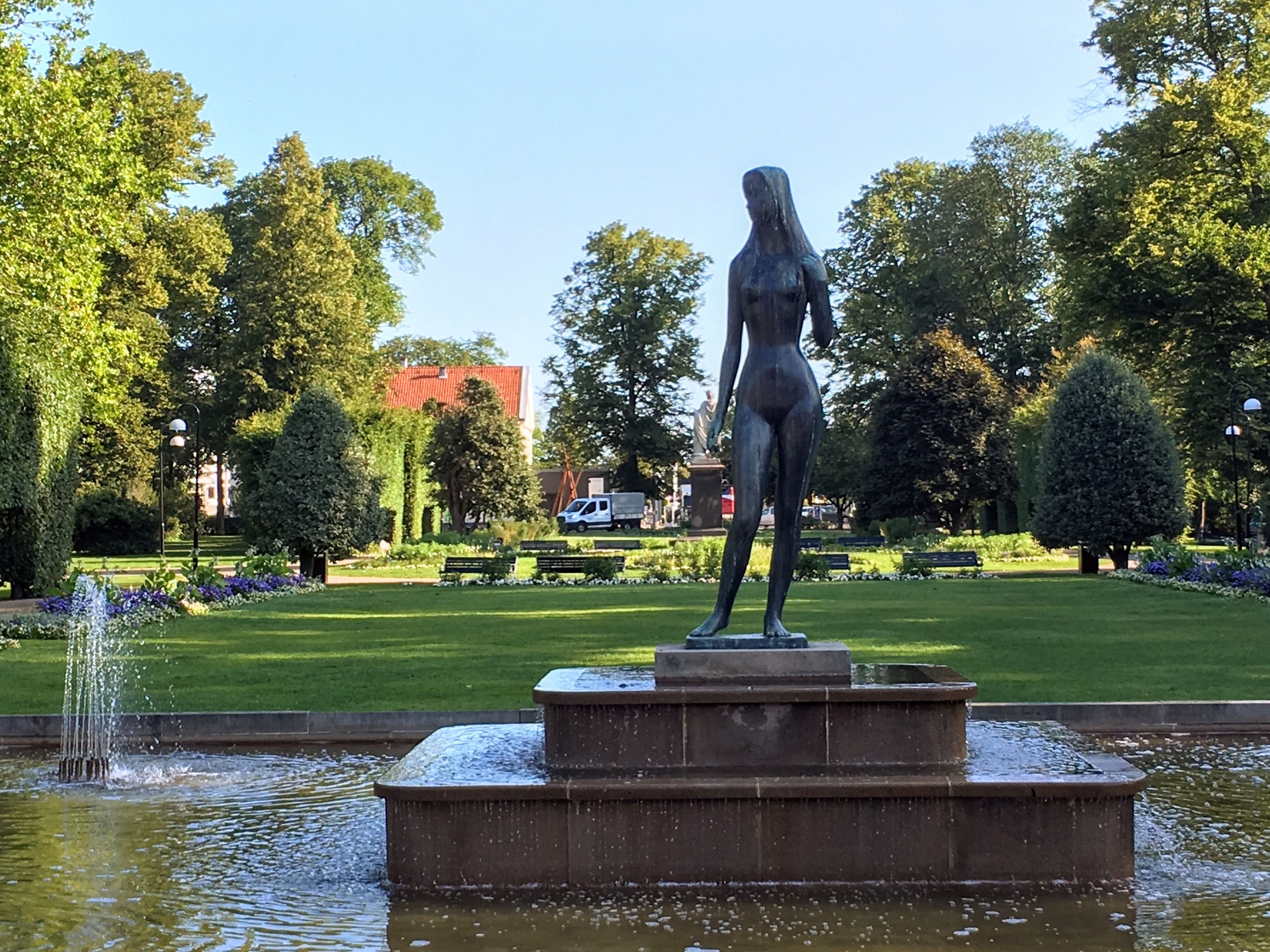 Konstspanarna tittar på Blekingeflickan och Fiskargumman.