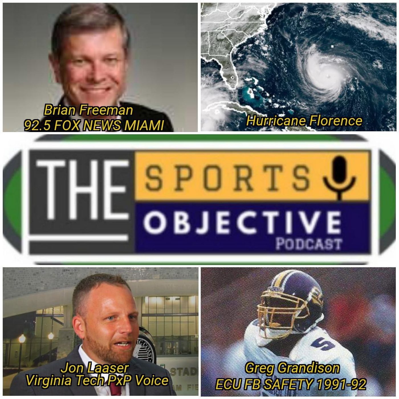 The guys are joined by Brian Freeman of 92.5 FM Fox News Miami to talk Hurricane Florence, Virginia Tech PxP Voice Jon Laaser and ECU great Greg Grandison.