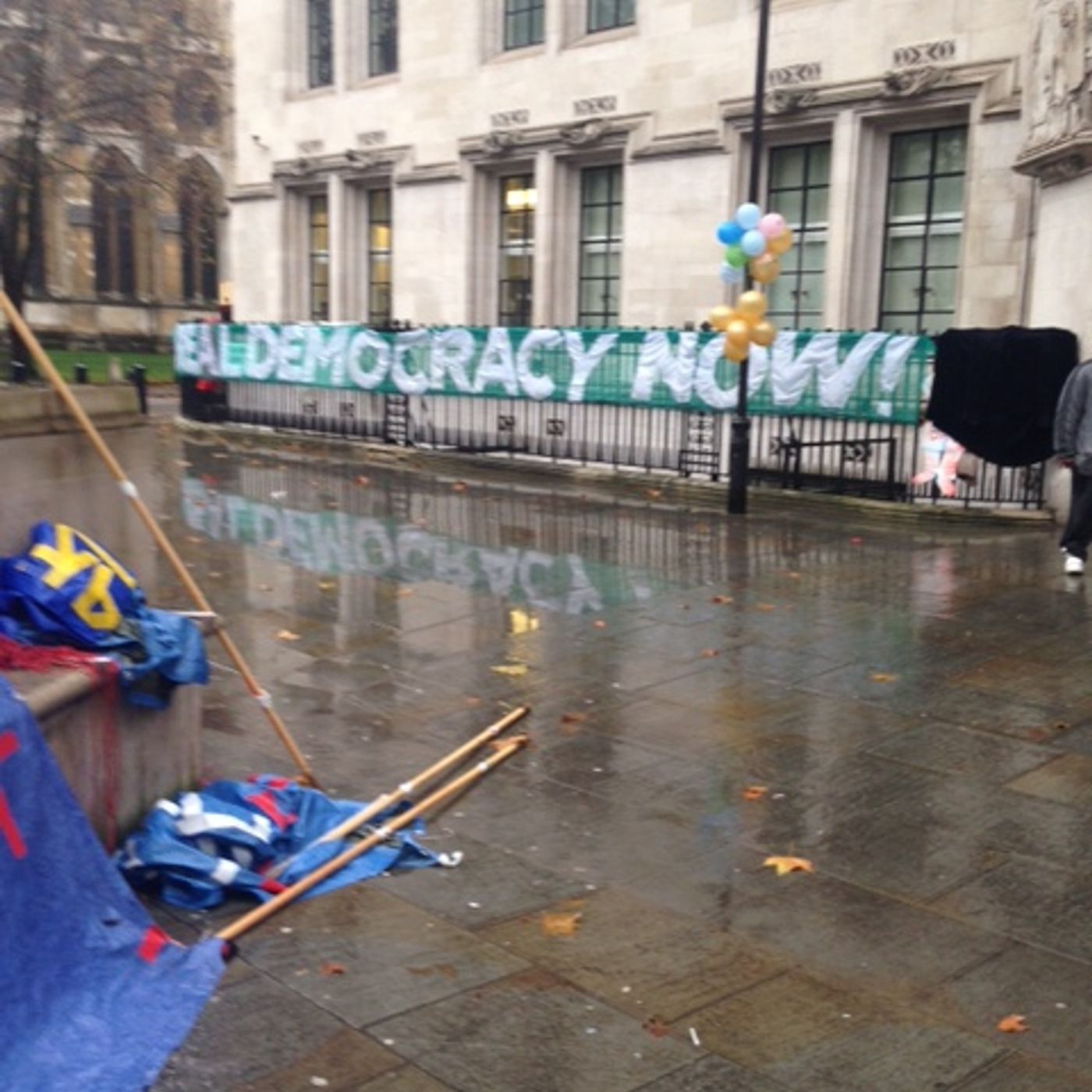A small but passionate group of Occupy Movement protesters staged a weekend sit in outside parliament in London's Westminster. On a very wet Sunday morning Anne Daly went to meet them in the midst of a very heavy police presence.