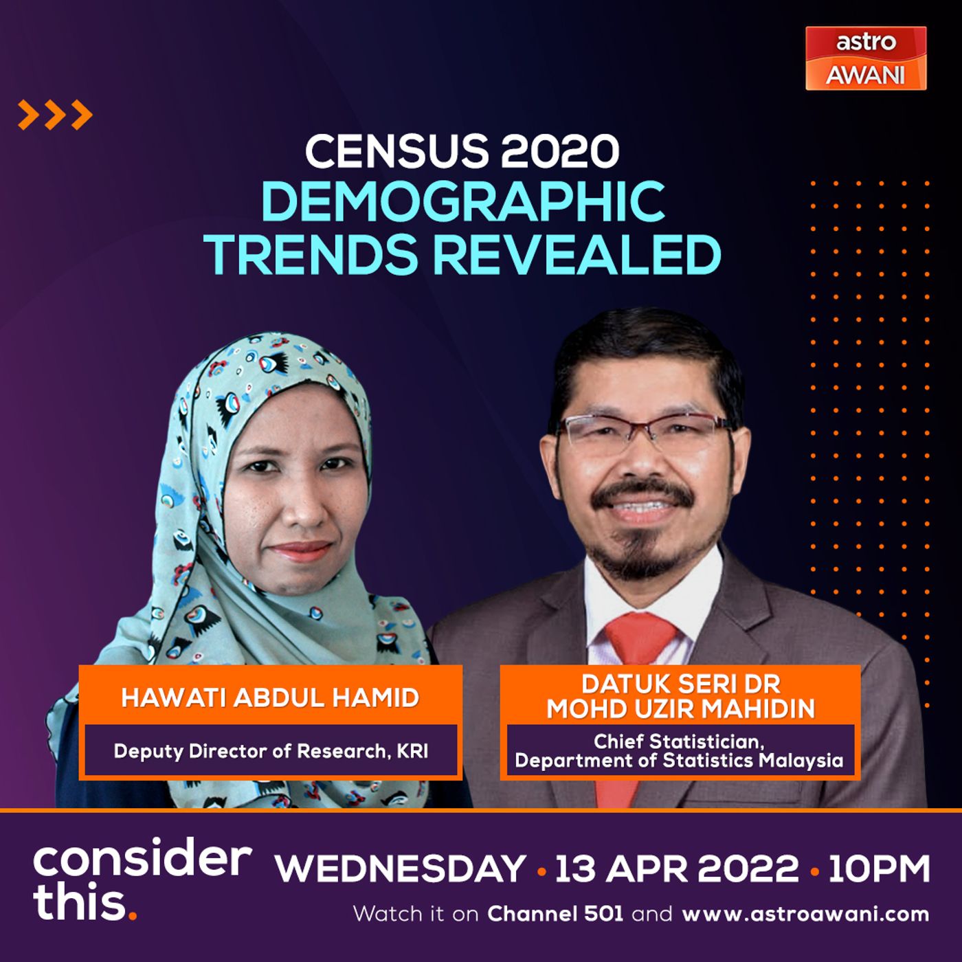 How is Malaysian society changing? What notable demographic trends were revealed in the latest National Census report? Tonight on #ConsiderThis we ask our guests how to better understand Malaysia's changing social fabric.