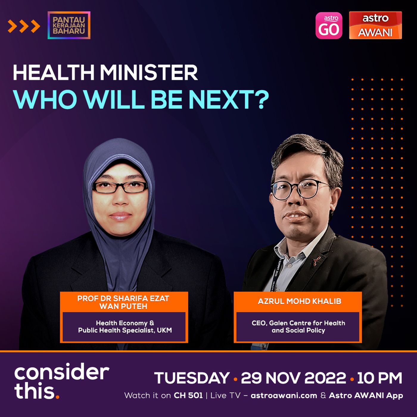 Dr Dzul? KJ? Are they being considered for the Health portfolio? Who else should be on the shortlist? As we await the Cabinet line-up, tonight on
