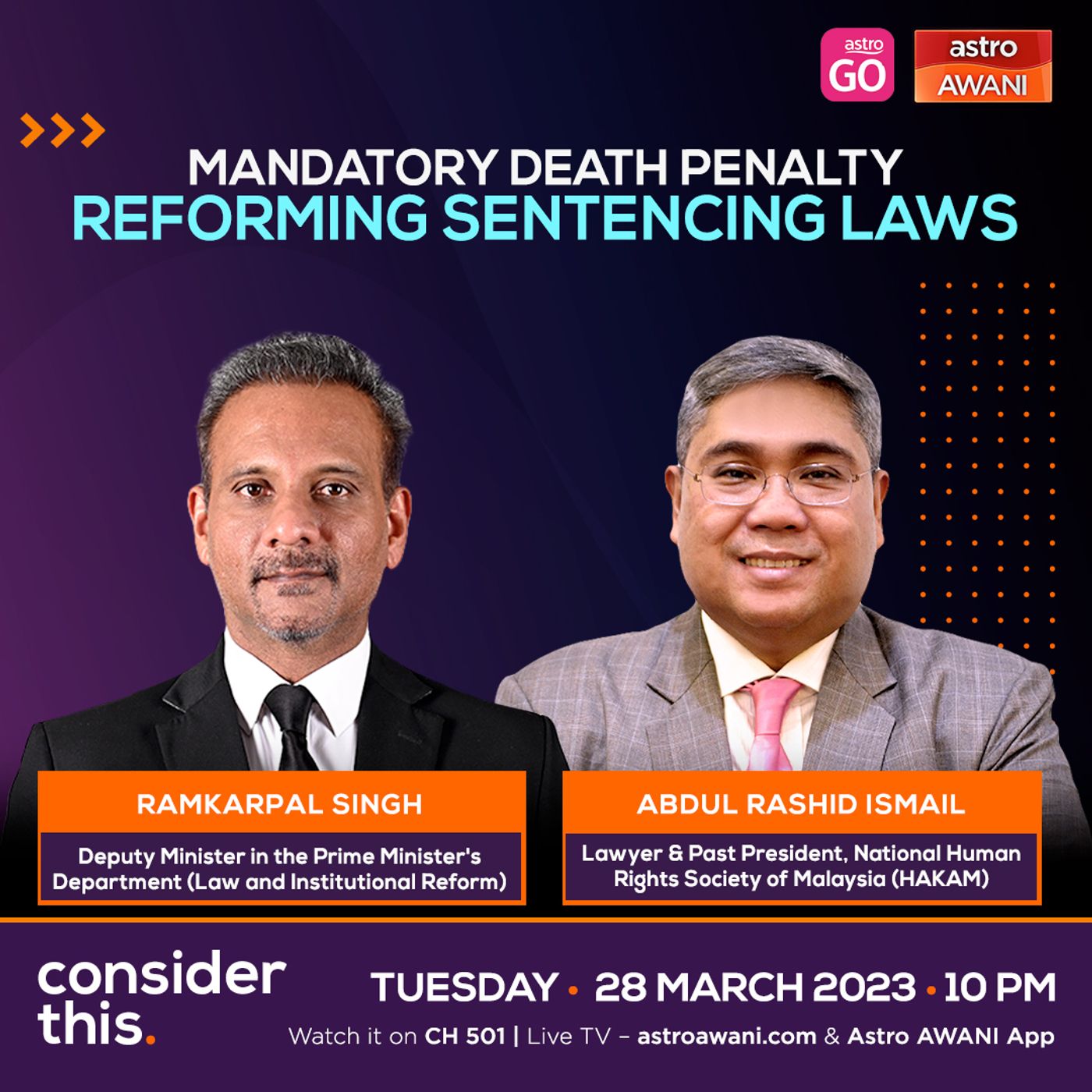 The Bill to abolish the mandatory death penalty has been tabled for its first reading in the Dewan Rakyat, along with amendments to abolish "natural life imprisonment" and to replace "life imprisonment" with a capped duration. On #ConsiderThis we ask our guests about sentencing reform and the shift from retribution to rehabilitation.