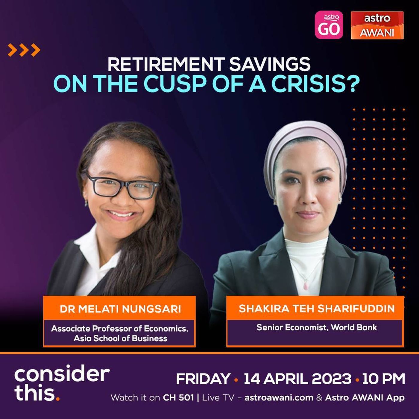 Recently EPF launched an Account 2 Support Facility to assist some members to obtain personal financing from banking institutions. The initiative received 60,000 applications in its first few days, signalling a dire need for liquidity for many. But is access to retirement funds the answer? On this episode of #ConsiderThis, Melisa Idris speaks to Dr Melati Nungsari, Associate Professor of Economics at the Asia School of Business and Shakira Teh Sharifuddin, Senior Country Economist at World Bank.