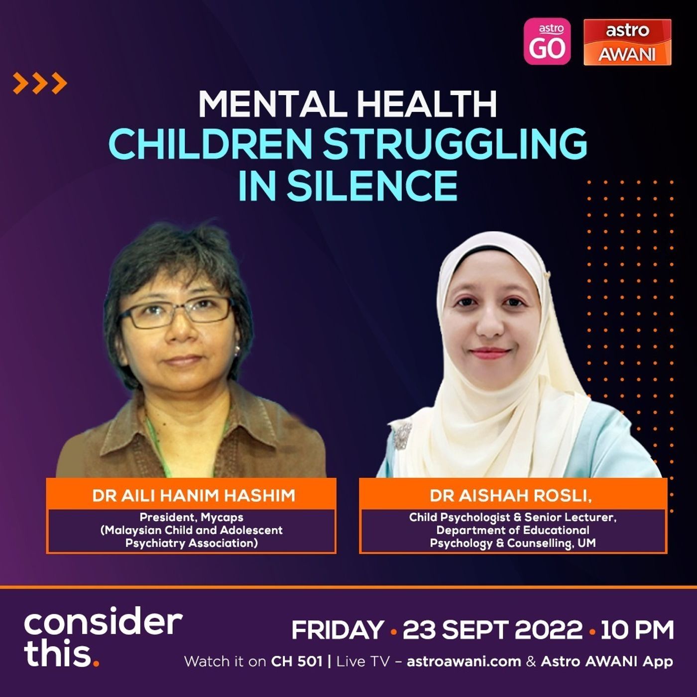 It's estimated that 1 in 8 adolescents in Msia have mental disorders. Is there a framework in place to provide them & caregivers with mental health & psychosocial support? On #ConsiderThis we ask our guests about mental health issues among children.