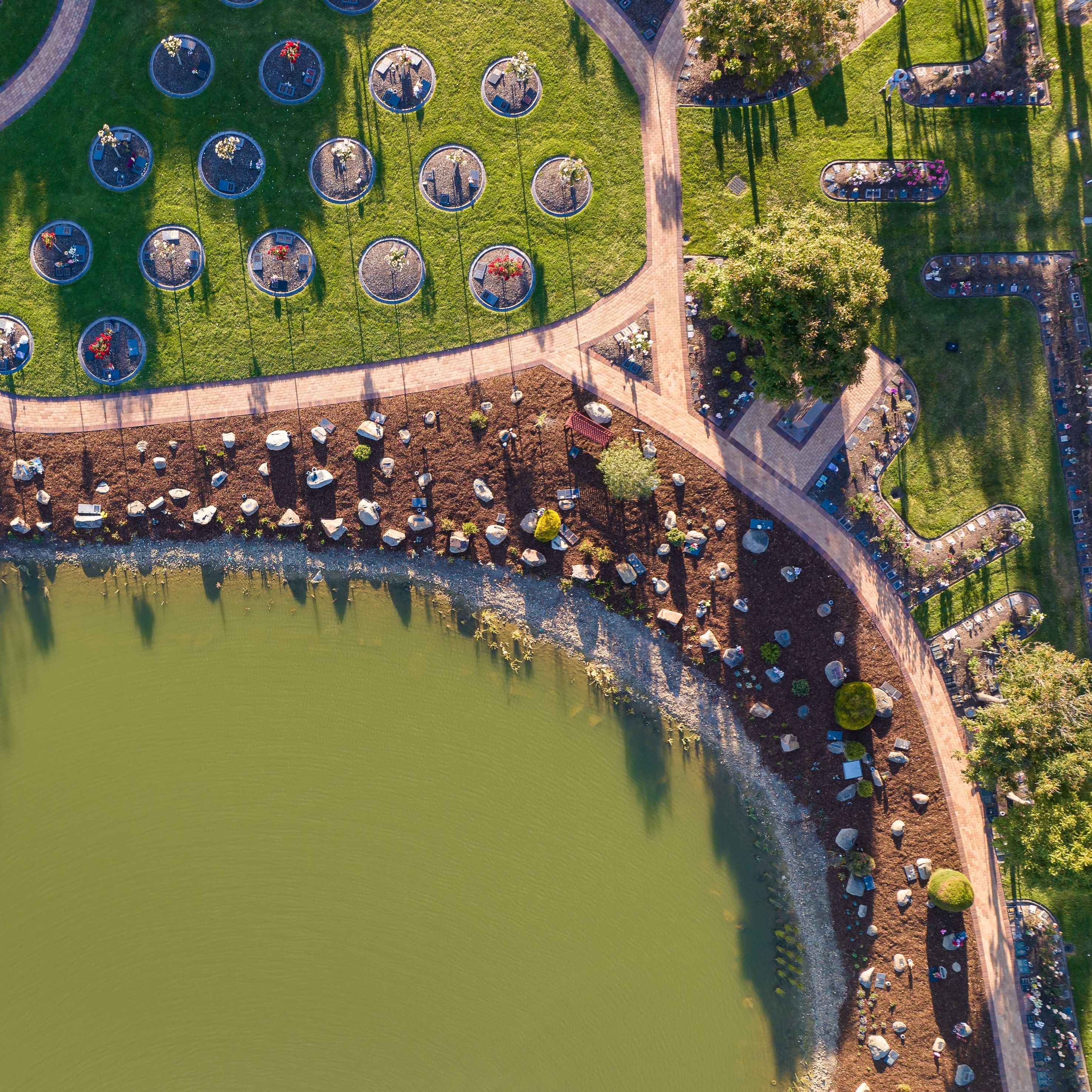 Image: Genesis Lake, Bunurong Memorial Park. Photo: Jonathan Lang for Southern Metropolitan Cemeteries Trust.