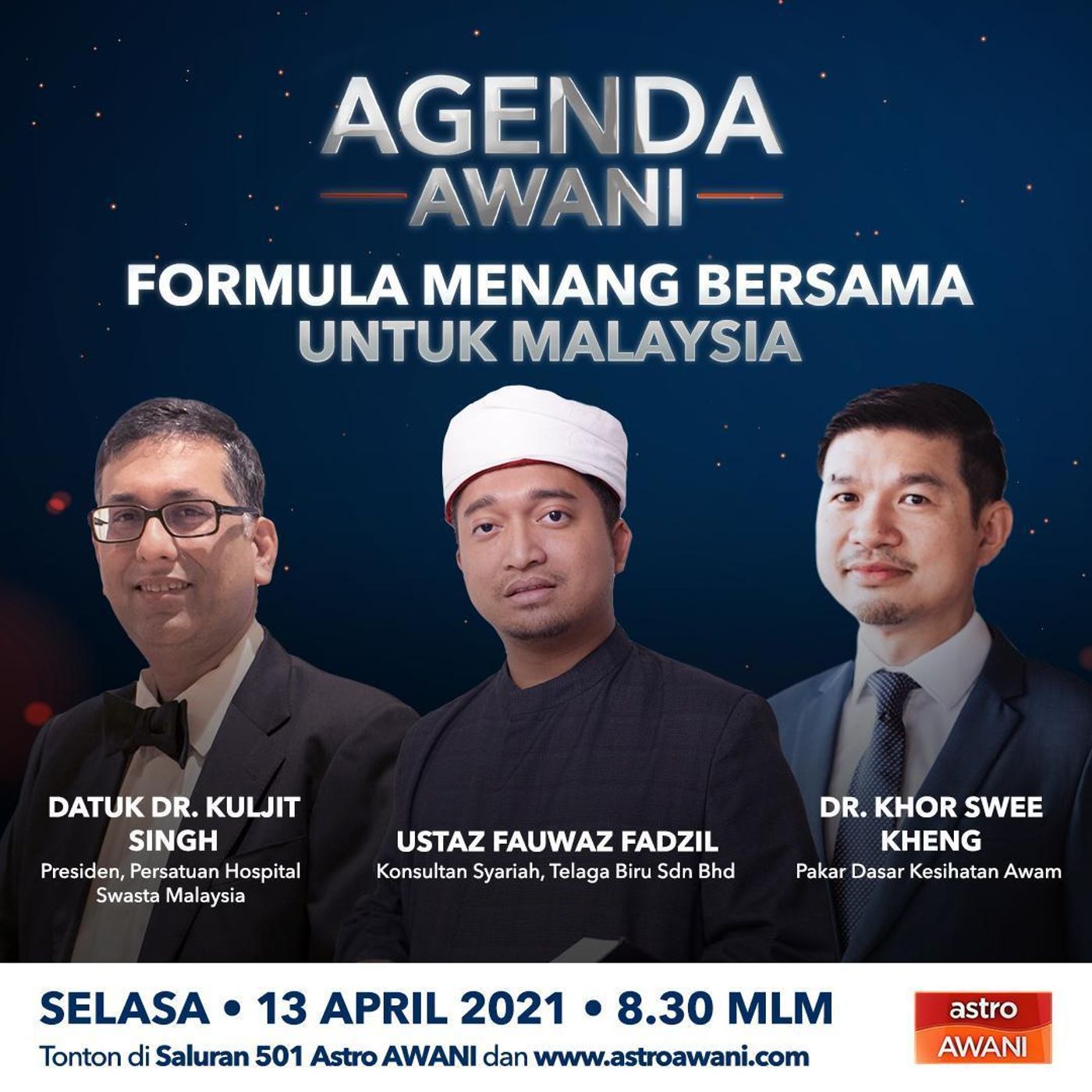 Diskusi Nazri Kahar bersama Datuk Dr Kuljit Singh, Presiden Persatuan Hospital Swasta Malaysia, Ustaz Fauwaz Fadzil, Konsultan Syariah Telaga Biru Sdn Bhd dan Dr Khor Swee Kheng, Pakar Dasar Kesihatan Awam didalam Agenda AWANI.