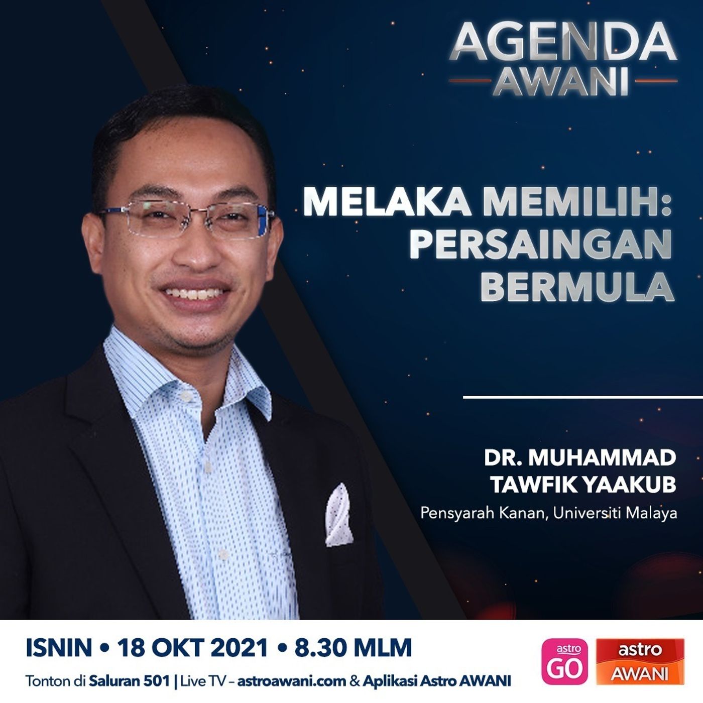 Buka gelanggang, persaingan kini bermula. Penamaan calon PRN Melaka 8 Nov dan hari mengundi 20 Nov ini. Diskusi @essanyahya bersama Dr Muhammad Taufik Yaakub, Pensyarah Kanan UM dalam #AgendaAWANI jam 830 mlm ini di saluran 501 dan astroawani.com