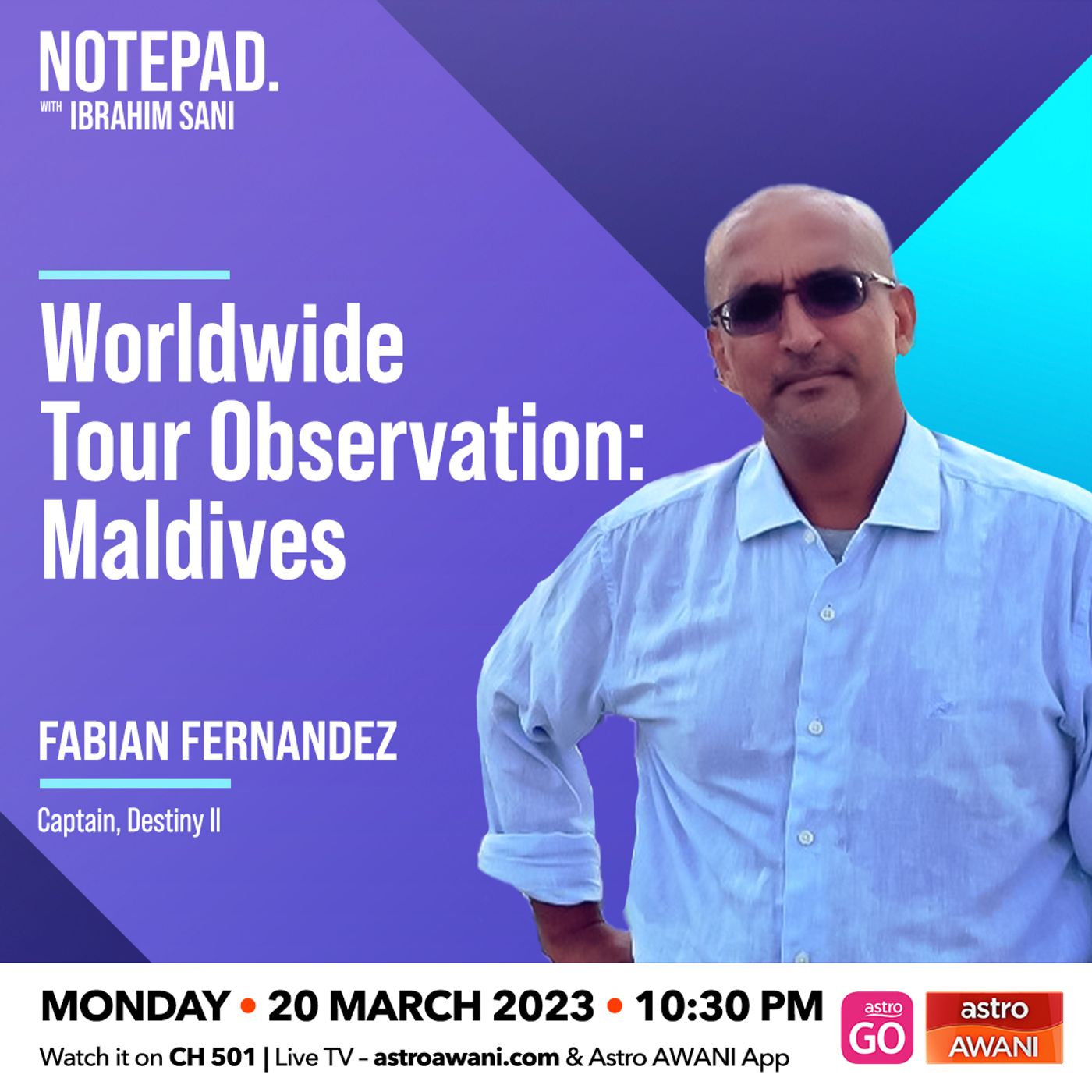 Join Fabian Fernandez, Captain of the renowned Destiny II, on an unforgettable journey as he takes you on a virtual tour of the Maldives.