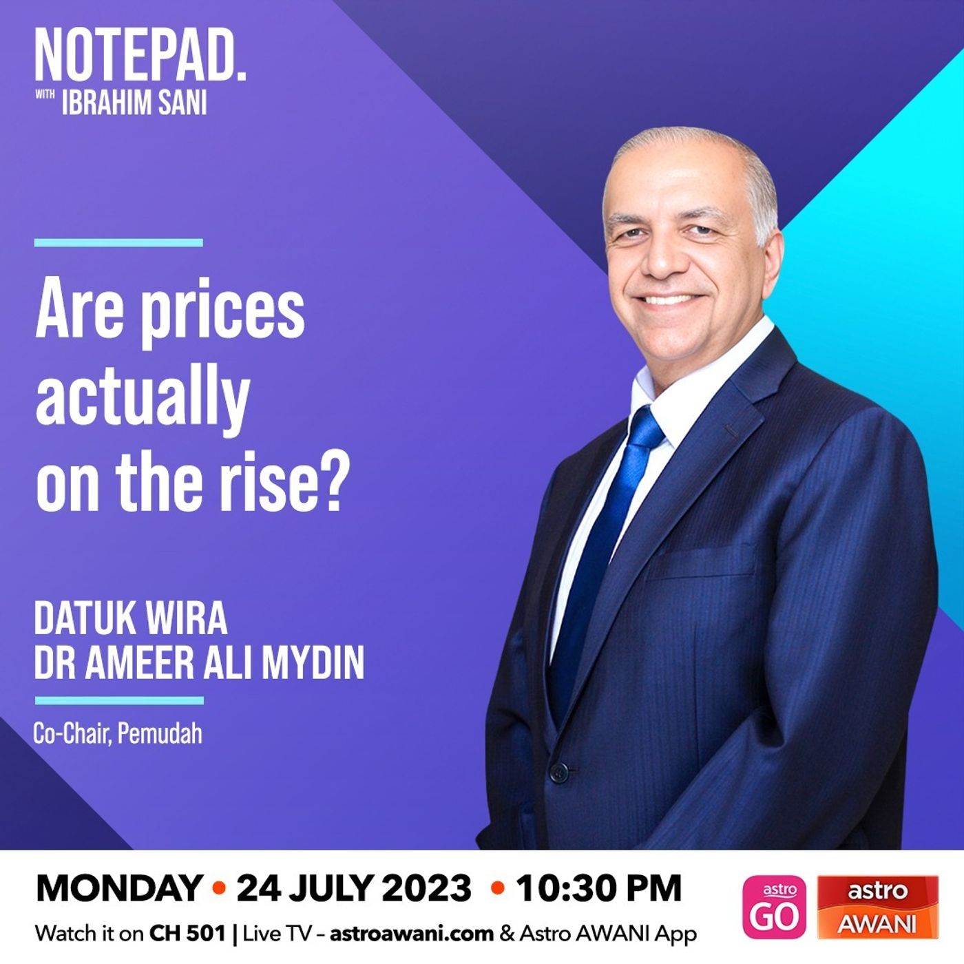 While the official reports may indicate a decline in Malaysia's inflation, the crucial question that arises is whether this numbers genuinely reflects the actual experiences of individuals and families? To gain a deeper understanding, let's explore the specific aspect of food prices and their impact on consumers together with Co-Chair, Pemudah, Datuk Wira Dr Ameer Ali Mydin on #NotepadWithIbrahimSani tonight.