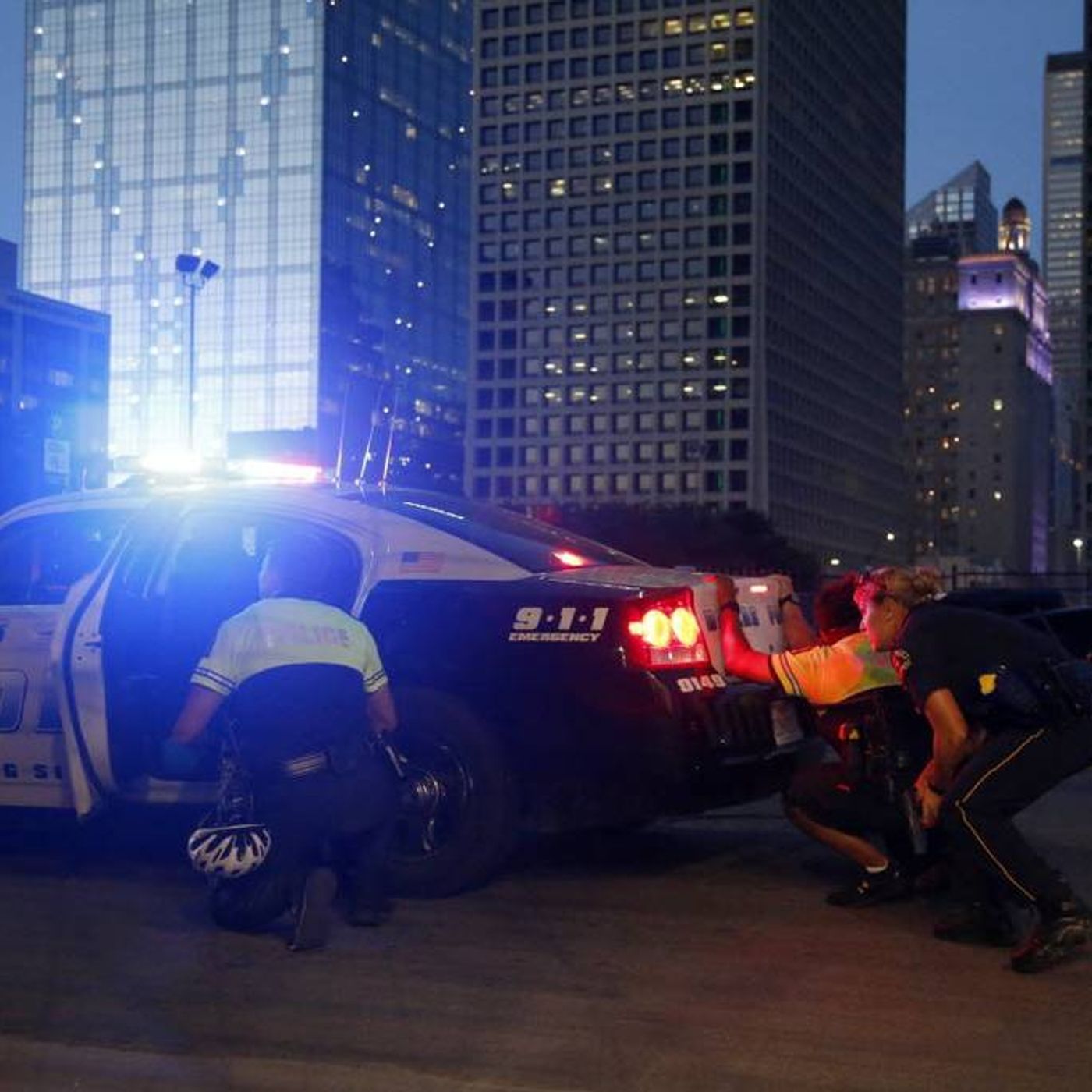 Audio provided by Dallas Police Department dispatch. First reports of officer down to suspect has a rifle.
