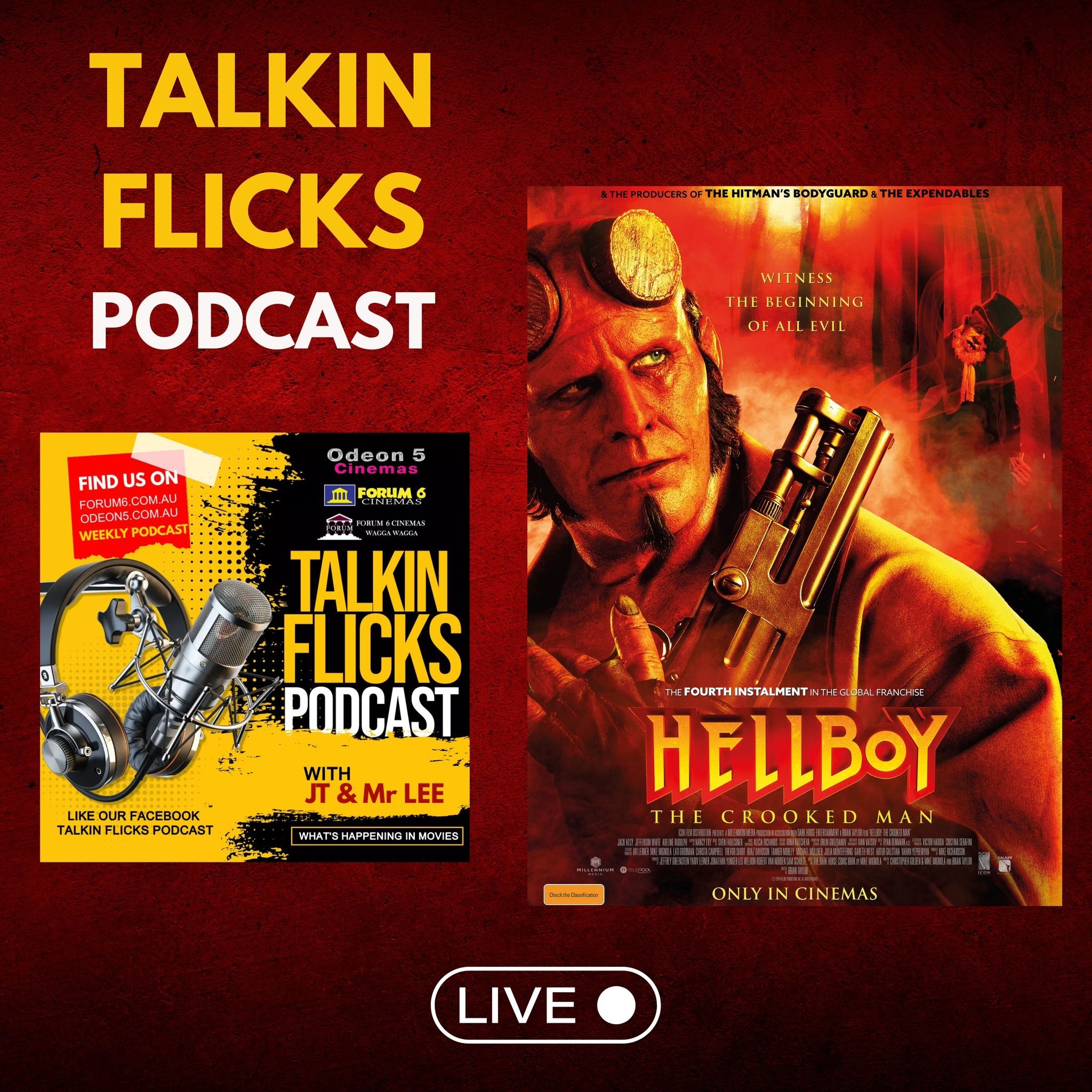Grant and JT take a look at Hellboy: The Crooked Man, which is new to cinemas this week. Also as school holidays wind down, get a full guide on what to see with the kids over the weekend. Some great stuff coming up at The Forum 6 and Odeon 5 Cinemas, we'll give you a rundown on what you need to add to your diary with 'Around The Screens'. Plus Grant has a "surprise" in this week's movie news .. but JT isn't so happy. Hit play to get your Talkin Flicks On!
