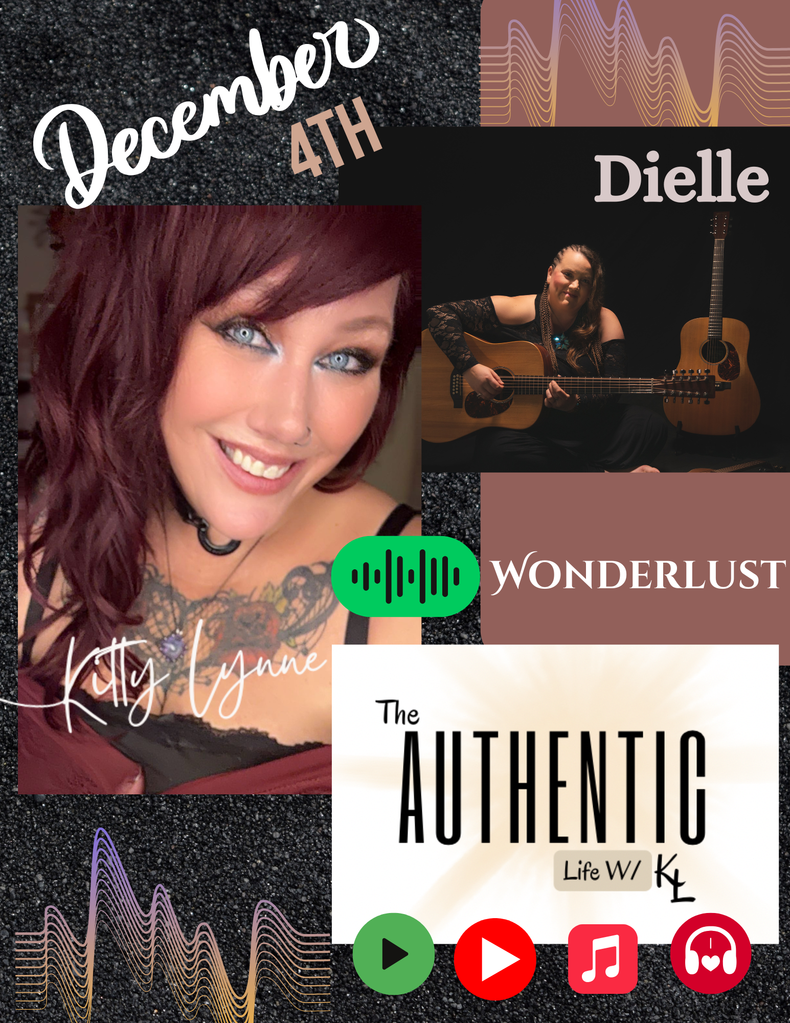 Dielle has been described as if the "Eagles & Adele raise lovechild in woods; barefoot explorer telling human truths with acoustic guitars". She writes lyrics right out of her own journey from celebrations to tragedy and grief and assists you in seeing things through different eyes following the completion of listening to one of her songs. We discuss the struggles with mental health in humanity, grief, growth, expansion and so much more. See links below to connect: