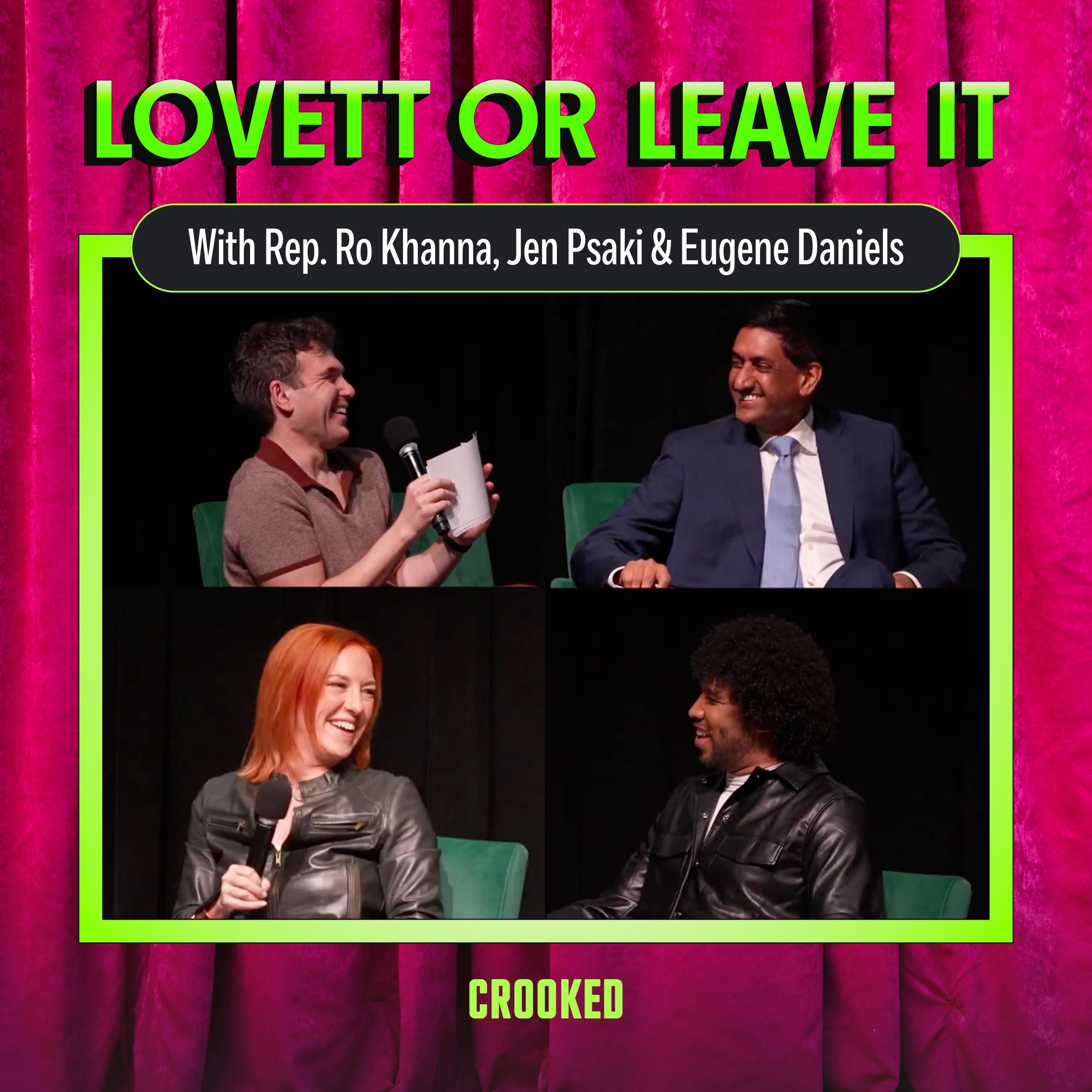 Lovett or Leave It returns to the beautiful Lincoln Theatre for a perfect night in our nation’s perfect capital. Pete Hegseth is in the barrel, Trump’s poll numbers are in the tubes, and JD Vance kills the pope — (cough) I’m sorry — kills the pope’s vibe. Congressman Ro Khanna joins to talk about defending democracy and finding courage. Jen Psaki and Eugene Daniels talk softballs and hard truths. Federal workers are off the leash and biting back at DOGE, and Lovett and his guests offer their thoughts and prayers to phrases that are no longer serving us.
