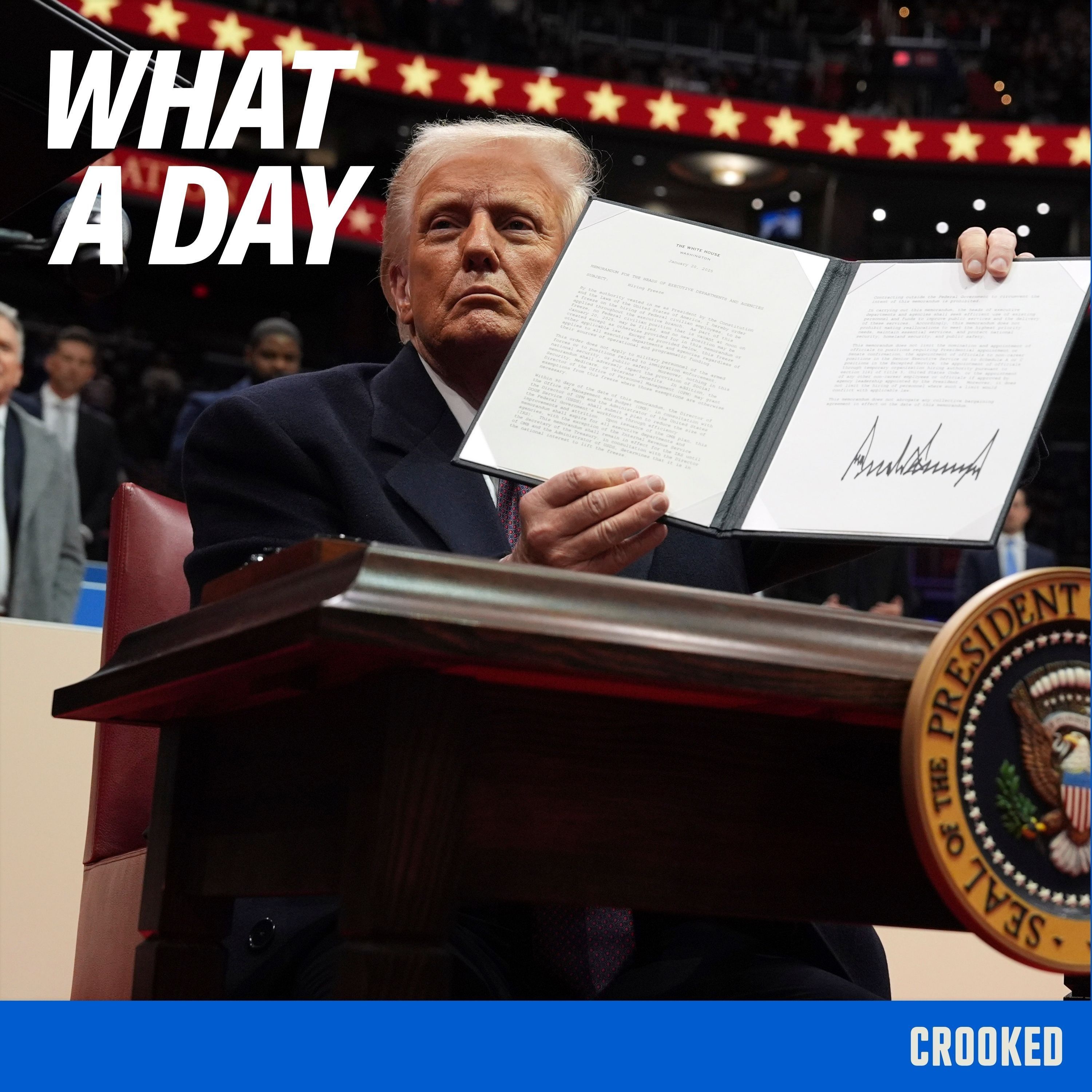 Donald Trump is President of the United States. Again. His inaugural address Tuesday wasn’t quite as dark as the ‘American carnage’ speech he gave eight years ago. This time around, Trump promised the beginning of a “golden age of America” before reading off a laundry list of policies he plans to pursue during his presidency that will, almost certainly, not usher in a golden age. Standing behind Trump were some of the richest men in the world: Tech CEOs Sundar Pichai of Google, Meta’s Mark Zuckerberg, Amazon’s Jeff Bezos, and X’s Elon Musk. Longtime D.C. reporter and friend of the pod Todd Zwillich helps us break down Trump’s inauguration speech.