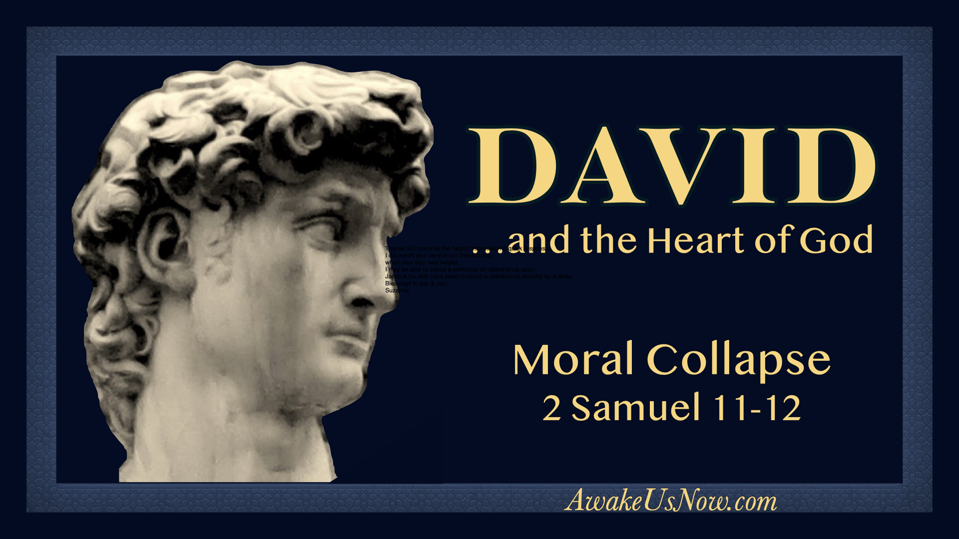 This message deals with the difficult topic of moral collapse, specifically in David's life. Painful as it is, it can teach us much about the importance of walking faithfully before the Lord and resisting temptation.
