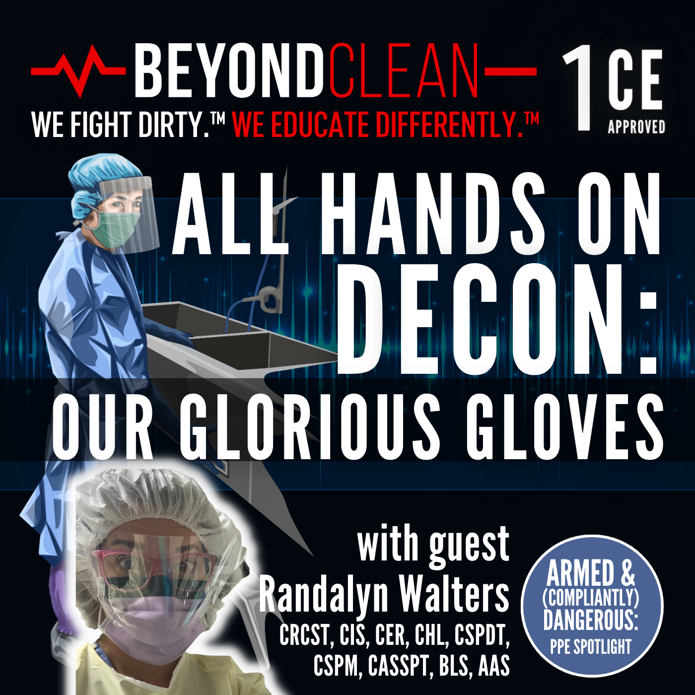 Season 20 of the Beyond Clean podcast, "Armed & (Compliantly) Dangerous," is all about personal protective equipment (PPE), and in this episode Randalyn Walters, Clinical Education Manager for Belimed, steps in the ring to lay out what you need to know about gloves. Join us as we take on both sides of one of the most hotly debated topics in sterile processing and outline the OSHA guidelines for keeping you and your team safe. Randalyn shares her experience as both a sterile processing leader and a frontline technician in addressing skin irritation from gloves, proper donning and doffing practices, and the dealing with the dreaded waterlogged gloves. It's a can't miss episode on this season of Beyond Clean.
