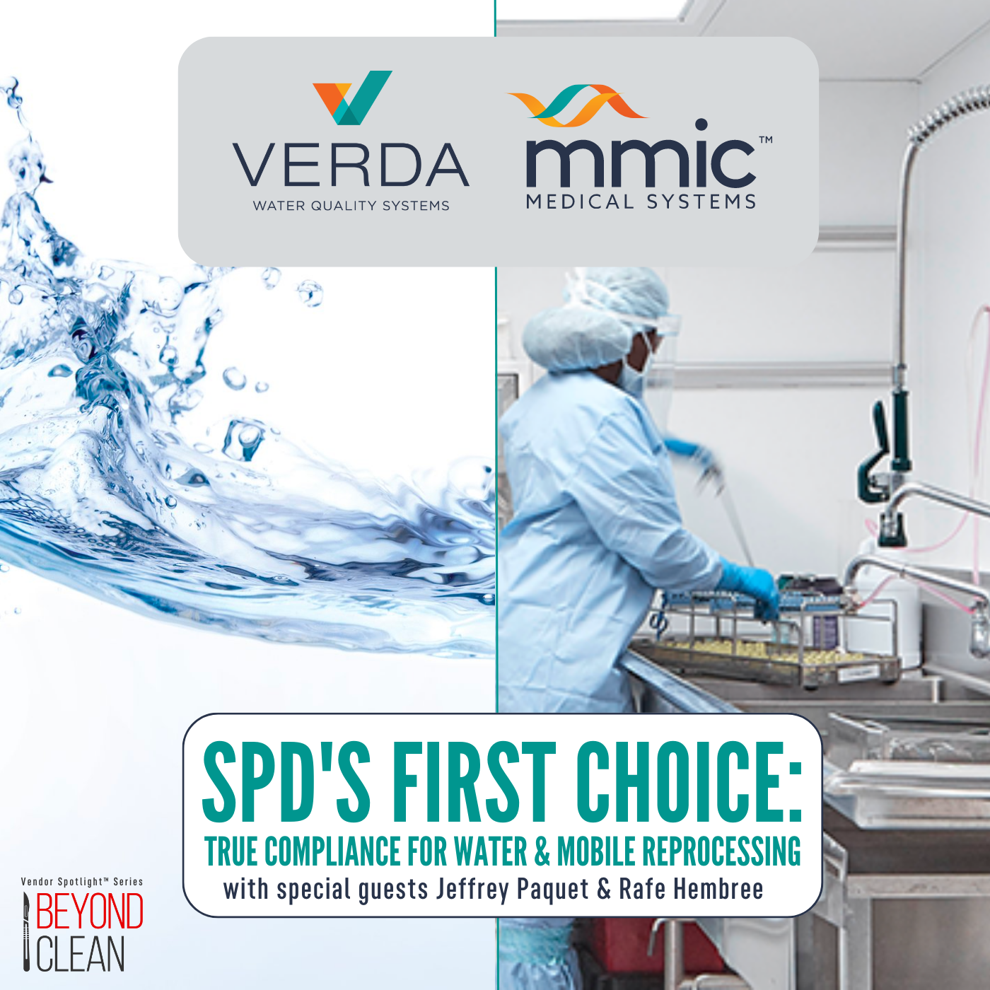 When you think of Sterile Processing water quality, do you breathe a sigh of relief or feel a little jolt of anxiety run down your spine? How about when you consider a big SPD renovation that may require mobile reprocessing during construction? Do you have confidence in your options? Join us for this week's exclusive Beyond Clean Vendor Spotlight™ featuring mmic™ Medical Systems & VERDA Water Quality Systems, as we talk to industry disruptors Jeffrey Paquet, President & CEO and Rafe Hembree, Regional Business Development about how their teams are equipping Sterile Processing with true compliance. With their Sterile Processing focus, mmic™ and VERDA's collective missions are to improve the SPD environment by helping the people in Sterile Processing speak their truth. Tune in to hear how you can move your department toward real compliance, and get your team's water & mobile projects completed quicker, with less time and resources from your team!