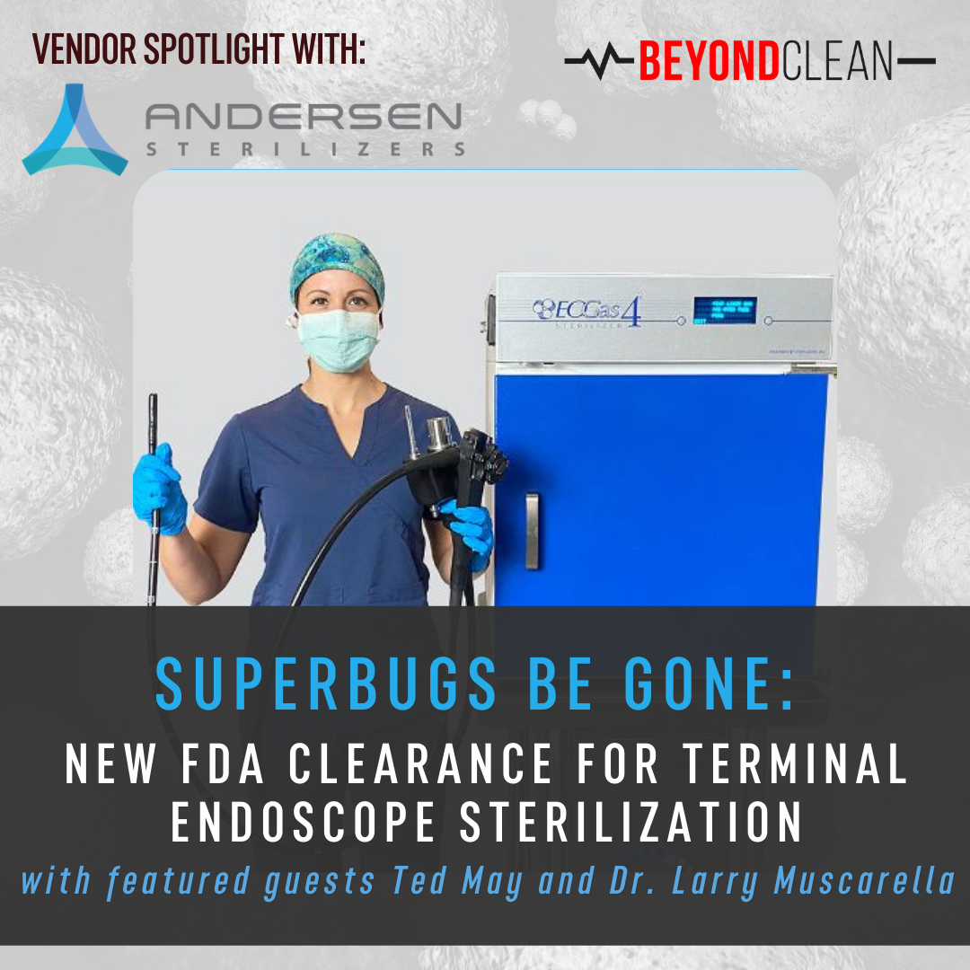 Picture it: you turn on the news and the top story reads: "infectious outbreak linked to hospital and clinic endoscopes." Let the media storm and regulatory survey frenzy begin! As Sterile Processing professionals, this is our industry's worst nightmare and on this Beyond Clean Vendor Spotlight, we talk with Ted May from Andersen Sterilizers and Dr. Larry Muscarella from LFM Healthcare Solutions LLC about a one of a kind sterilization technology proven to sterilize the toughest endoscopes on the market. Ted introduces the EOGas 4®-- the first sterilization system to receive FDA clearance for terminal sterilization of duodenoscopes and colonoscopes. Dr. Muscarella offers his device reprocessing expertise to support the use of EO for endoscope sterilization. Tune in now to discover how high efficiency EO sterilization system is ensuring the highest level of sterility for our industry's toughest endoscopes.