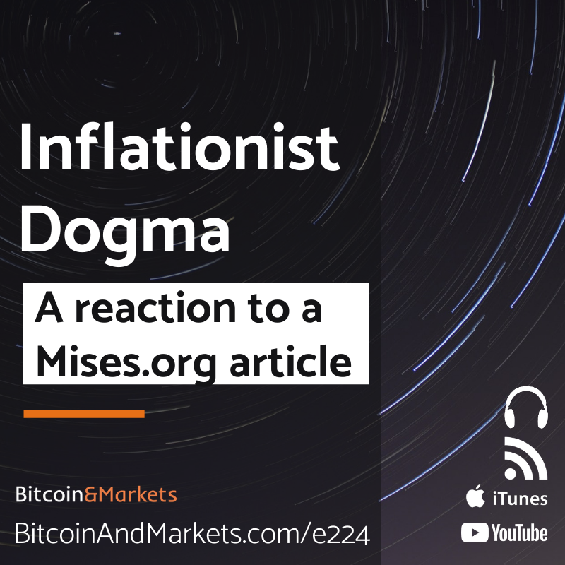 In this episode I listen and react to Doug French's recent Mises article Central Banks Put Wind at Bitcoin's Back. It's a short but wide ranging discussion touching on the current bitcoin rally, market manipulation, money, and central bank caused inflation. Suffice it to say, this article has a misplaced bias saying bitcoin's rally is "FOMO", "misallocation", and "human error".
