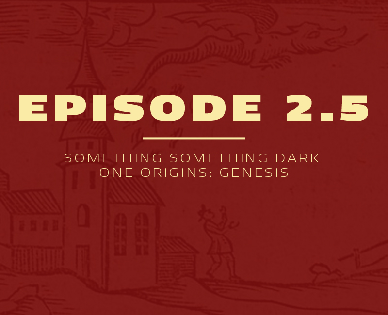 HISTORY! BACK STORY! EXPLANATIONS! ANSWERS YOU DON’T CARE ABOUT QUESTIONS YOU DIDN’T ASK! The Dark One’s story in his own words! Episode 2.5, “Something Something Dark One Origins: Genesis” was written, voiced, and recorded by people, at a place, using things. Visit harbingersofcalamity.bandcamp.com to download original music from the show. The songs “Plans in Motion”,