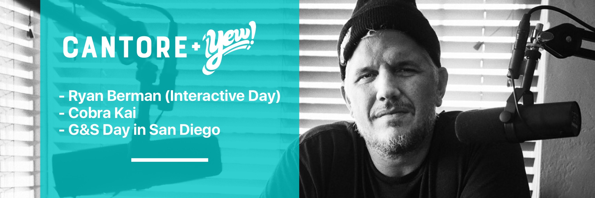 Cantore welcomes his friend Ryan Berman of www.sockproblems.com to discuss Interactive Day San Diego (and Cantore's new favorite show, Cobra Kai.) Plus, it's Gordon & Smith Day in San Diego with a phone call to Larry Gordon's daughter, Debbie about her father's new bench at Tourmaline Beach.