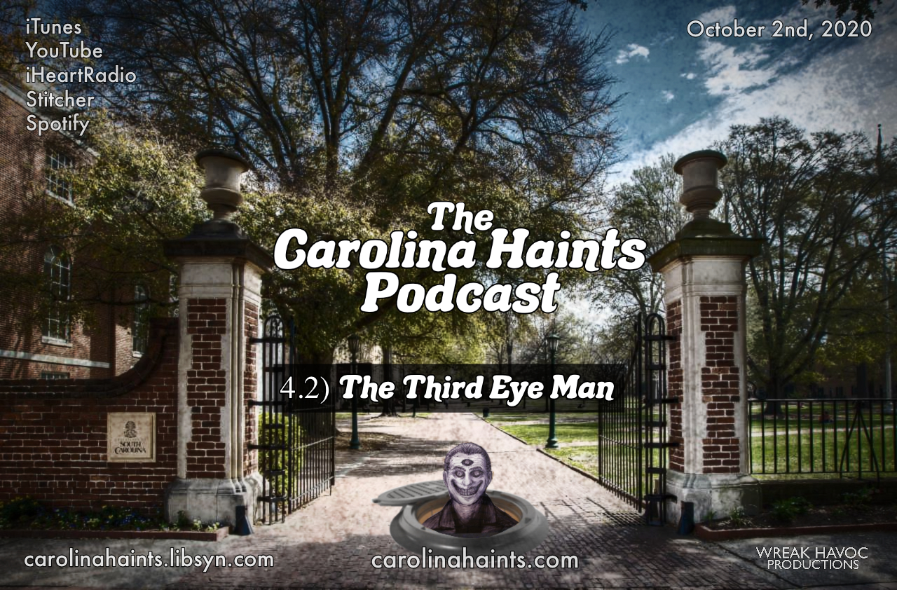 This episode focuses on the creepy Third Eyed Man of the University of South Carolina and some infamous nearby historical haunts.