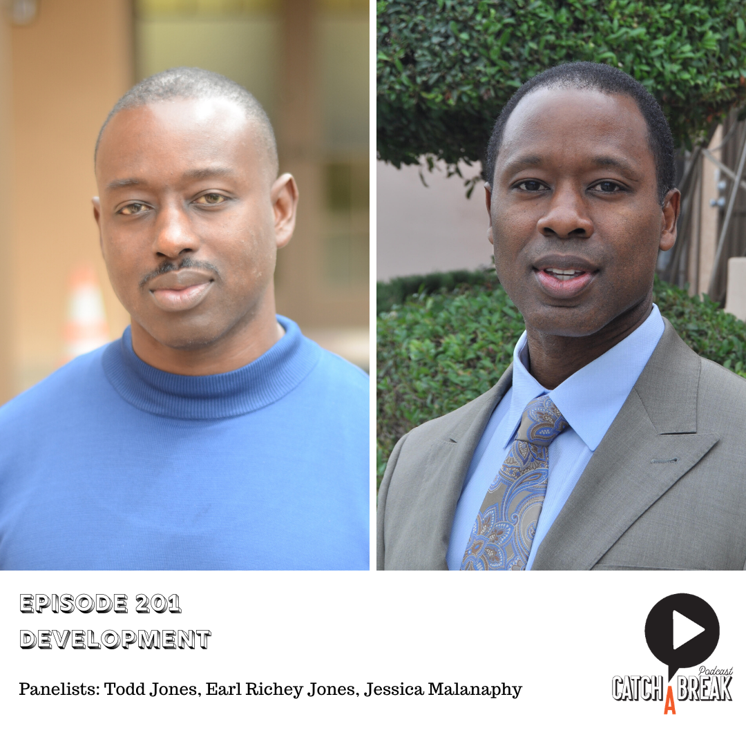Catch a Break is back for Season Two! And on this episode we are talking about development with Todd and Earl Richey Jones. Todd and Richey Jones began their writing career on the Emmy winning sketch comedy series "In Living Color", and from there they wrote and produced several sitcoms including "The Hughley's" and they were part of the original creative team behind the blockbuster animated hit "Rio". Our own Jessica Hall Malanaphy joins us as well to add her perspective from the side of a development executive.