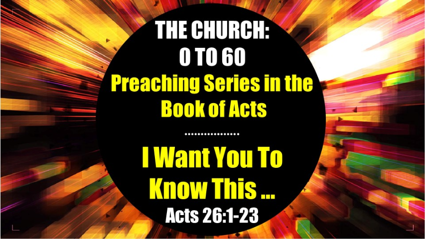 Today's sermon title is "I Want You To Know This" and the sermon is based on Acts 26:1-23. Paul made his defense before King Agrippa and he wanted the King to know somethings about his beliefs and his ministry.