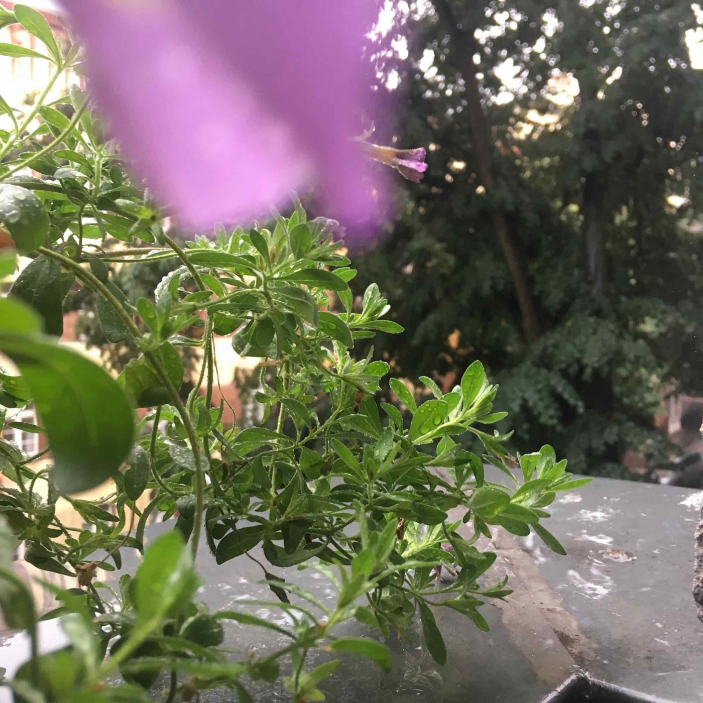 Blätter biegen sich, ein Treffen rollt auf das glänzenden Blech. Platsch, Bäng, nein, es klingt herber.