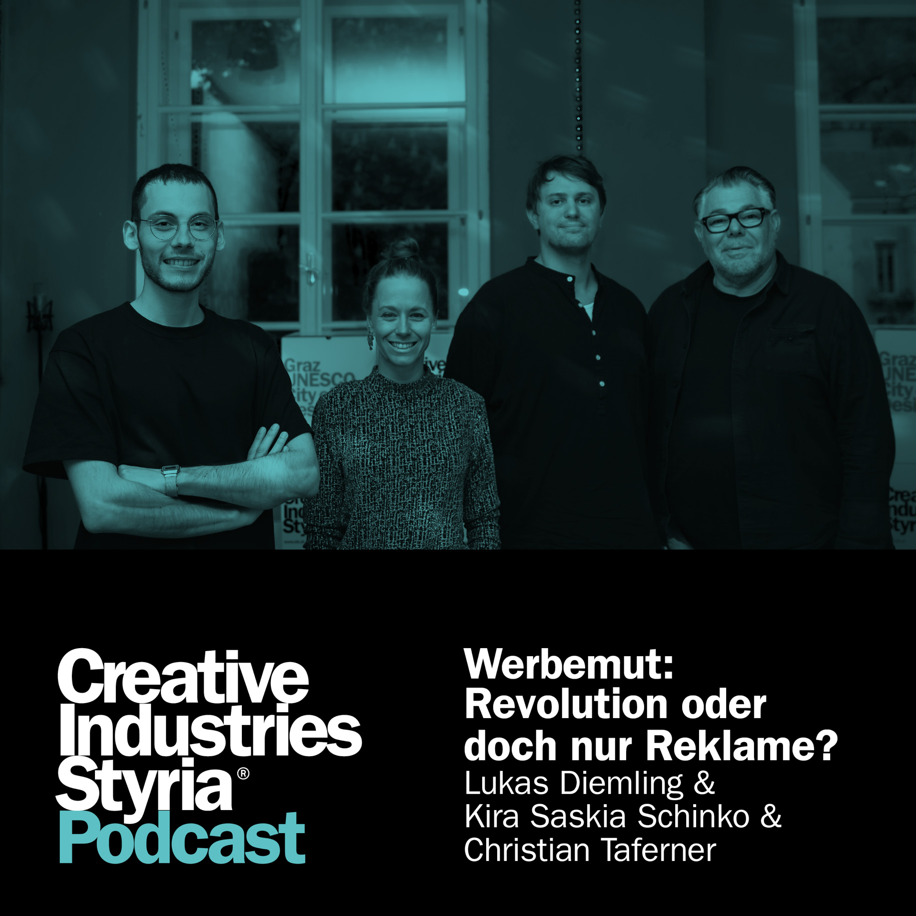Christian Taferner (Creative Lead, wolke blau), Lukas Diemling (Grafikdesigner) und Kira Saskia Schinko (Kommunikationsberaterin) diskutieren in dieser Episode des Podcasts in Kooperation mit der Werbeagentur wolke blau unter der Moderation von Eberhard Schrempf (GF, Creative Industries Styria) live vor Publikum über Mut in der Werbung. Gemeinsam stellen sie sich die Frage, ob Werbung nur verkaufen oder auch verändern muss.
