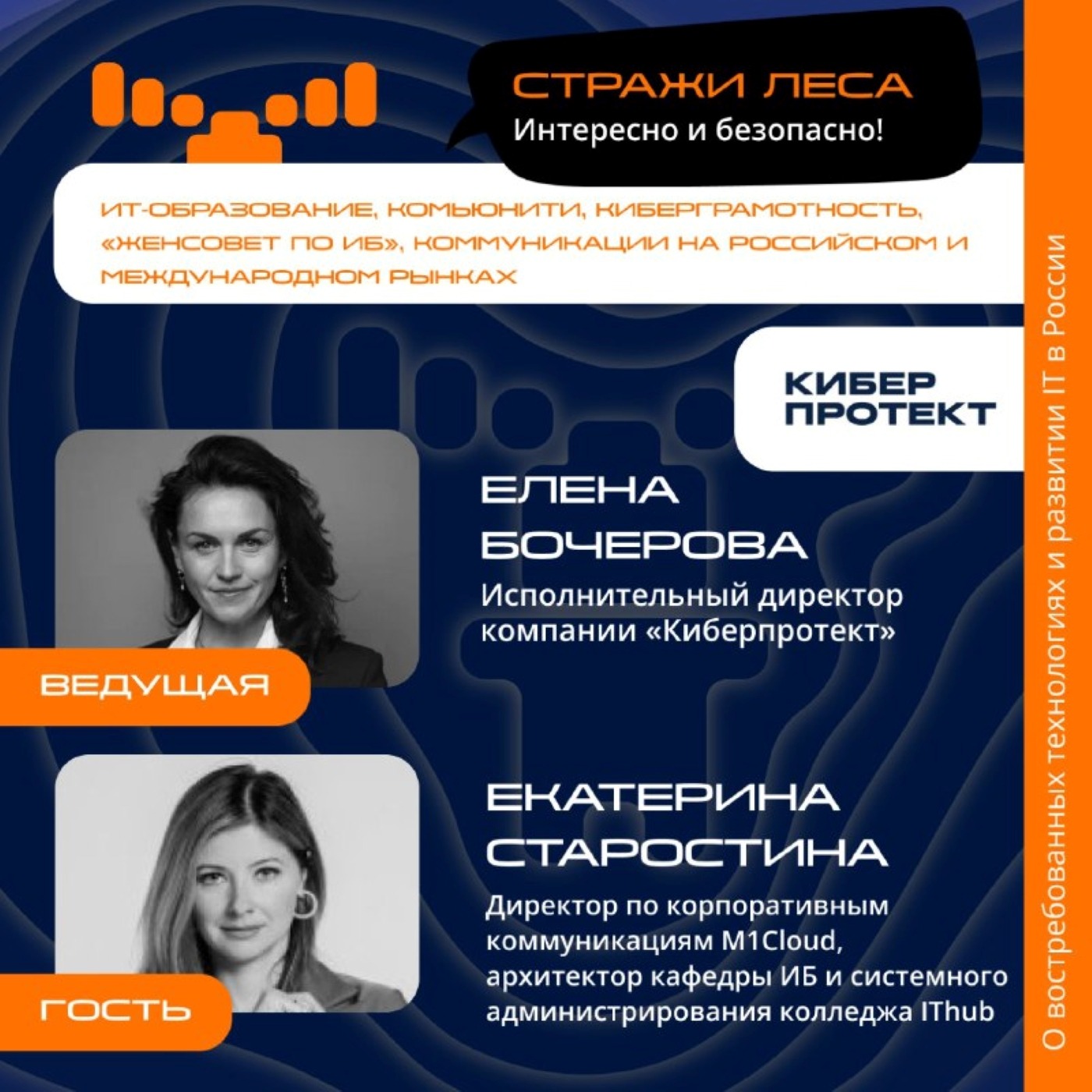 Сегодня в гостях Екатерина Старостина, директор по корпоративным коммуникациям M1Cloud, архитектор кафедры информационной безопасности и системного администрирования колледжа IThub. Обсудим темы:
