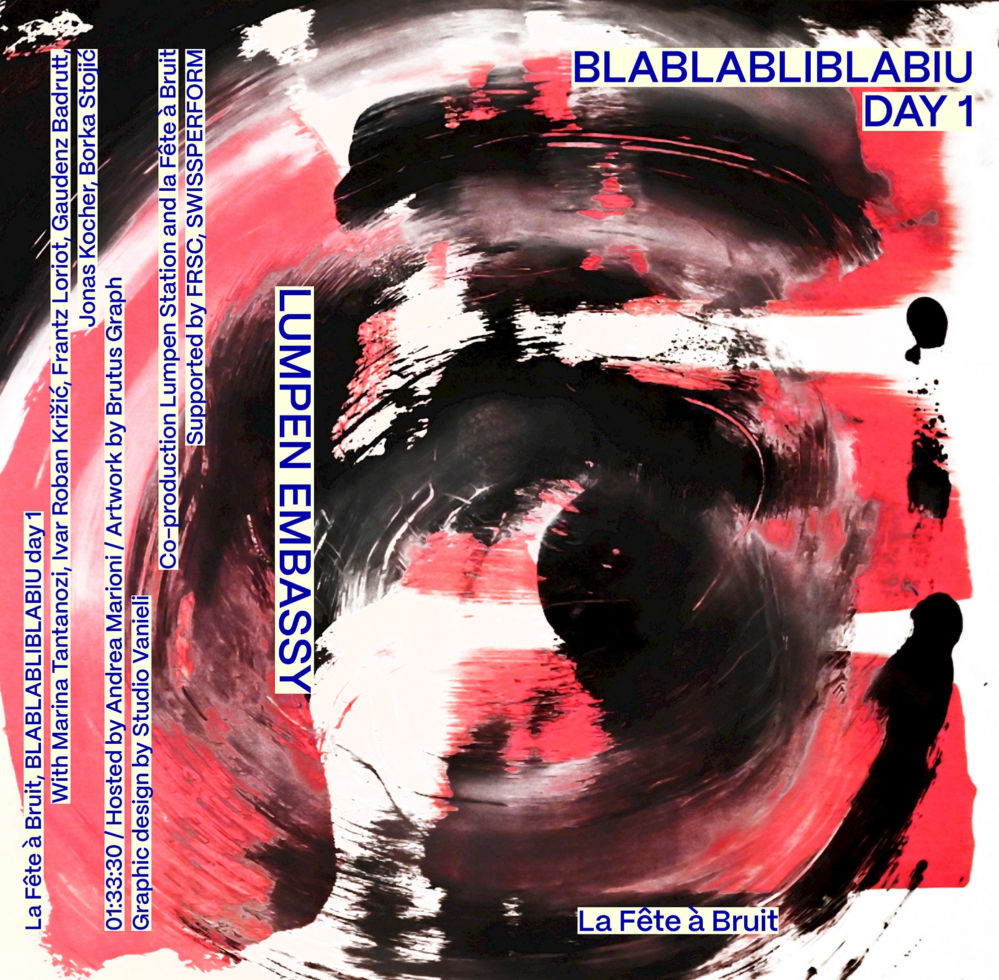 01:33:30 / Hosted by Andrea Marioni / Artwork by Brutus Graph / Graphic design by Studio Vanieli