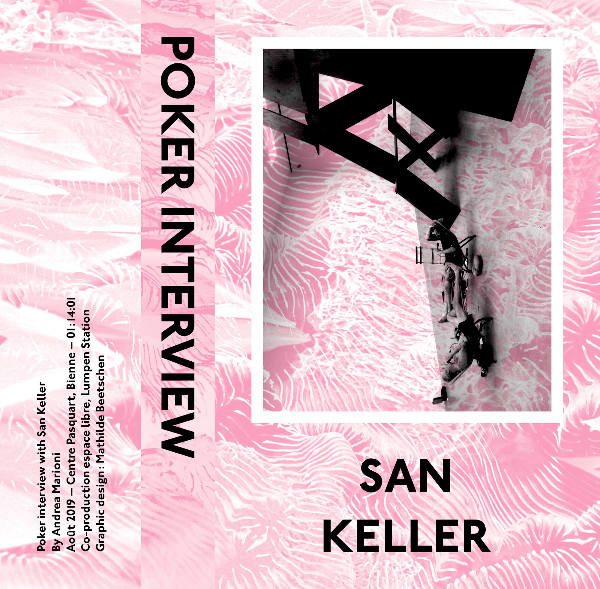Cette interview avec San Keller a été réalisée dans la salle Poma du Centre Pasquart à Bienne. L'artiste pioche des cartes pour réaliser une série de Poker, chaque carte correspond à une question inhérente à plusieurs aspects de la carrière artistique : vie privé, stratégie, esthétique, marché de l'art...