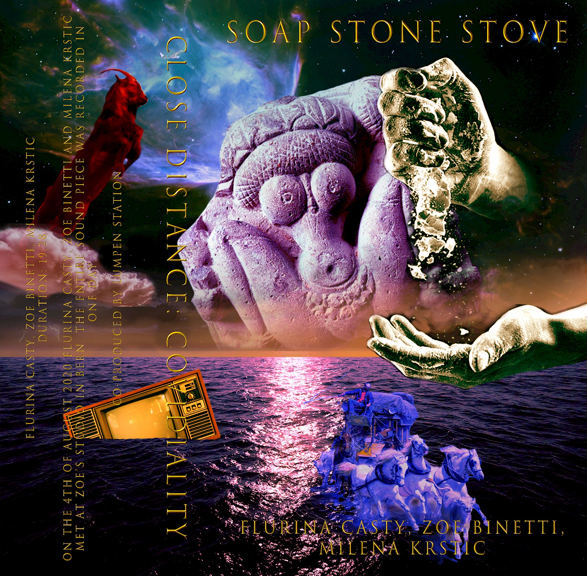 Soap Stone Stove (2020) is a poem written and performed by Flurina Casty. Suitable to the format of Lumpen Station, Flurina asked her friend and performance artist Zoë Binetti to accompany her with the eerie and instrumental sounds from Zoë’s improvisational repertoire. The live session of the two artists performing simultaneously was recorded on the 4th of August in Zoë’s Studio in Bern. Milena Krstic, sound artist, lyricist and composer, was asked to complete the team, as her technical skills would guarantee a great recording session. Her final mastering promised to give the work the crisp sound quality it deserves to guarantee a great auditive experience for the listener.