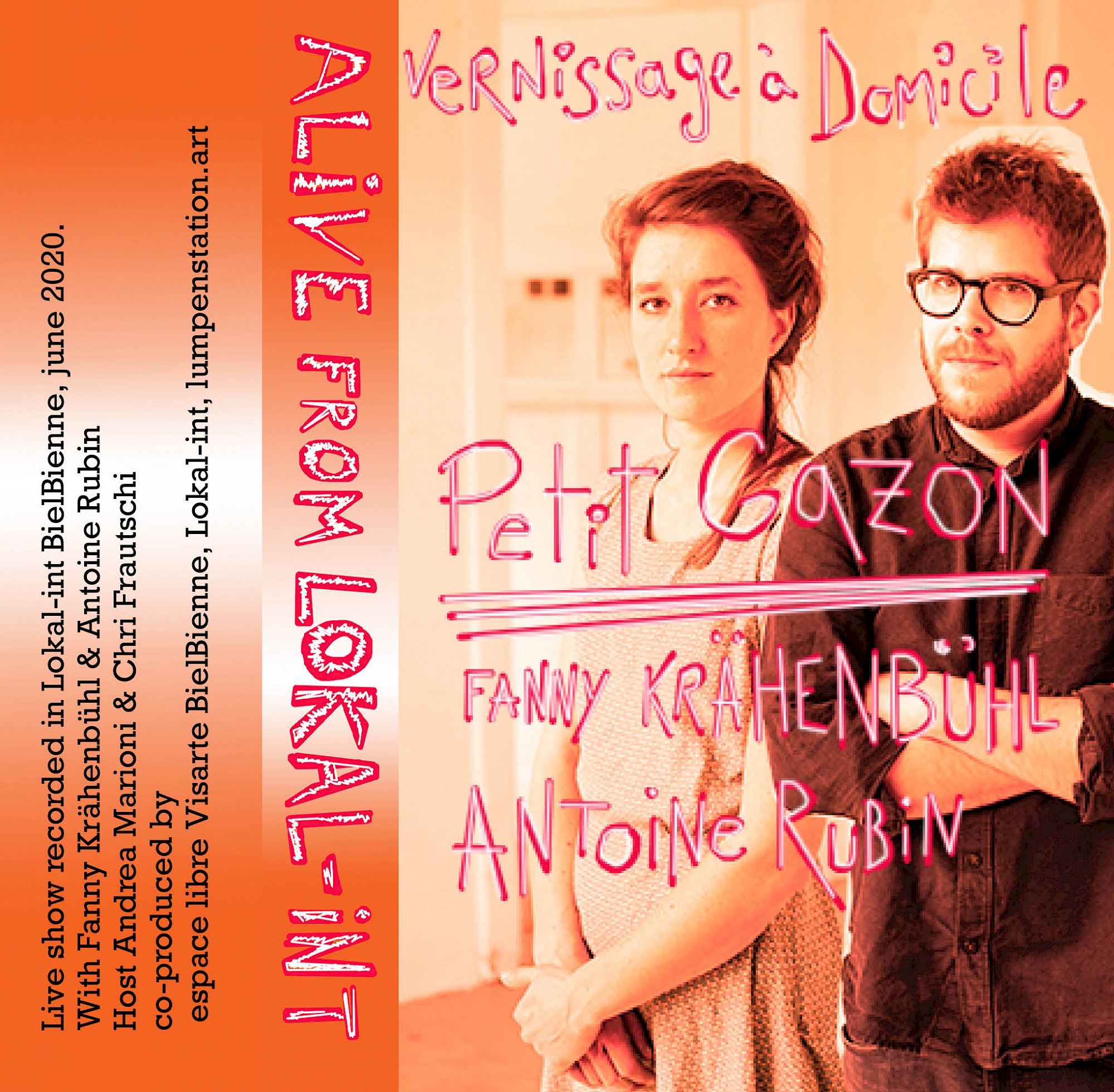 Invités à faire partie de la programmation de Lokal-int 2020 et présenter la pièce de théâtre «Petit Gazon», Fanny Krähenbühl et Antoine Rubin ont été reçus pour un vernissage à domicile sur lumpenstation.art. Avec Chri Frautschi, ils discutent en direct et de manière spontanée de leur projet et sur quoi il s'articule, tout en se donnant rendez-vous en 2021 pour une version mise à jour de la pièce de théâtre. On découvre que le «Petit Gazon» est un élément urbain typiquement suisse qu'il faut entretenir, parfois sans même l'utiliser, histoire de vivre dans un voisinage propre et beau à voir, mais qui manque peut-être un peu de vie.